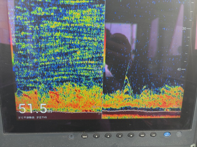 【タチウオ船】 タチウオ 大きさ 80~120㎝ 数 0~4匹 竿頭 江戸川区 山崎 敬太さん 他、 今日も浦賀航路周辺のポイントからスタート。細切れながら反応も点在しており、早々に型を見れるもアタリの遠い感じ・・。下げ潮にのり大きく流してもアタリを出す程度でしたが、潮が緩んでくると反応も一気にまとまり、魚探を見るだけでは活性の高そうな映りっぷりに!帰り際まで反応はバッチリもかなりのテクニカルモードで盛り上がる事はありませんでしたが、サイズはメーター前後の良型主体でバッチリでした!