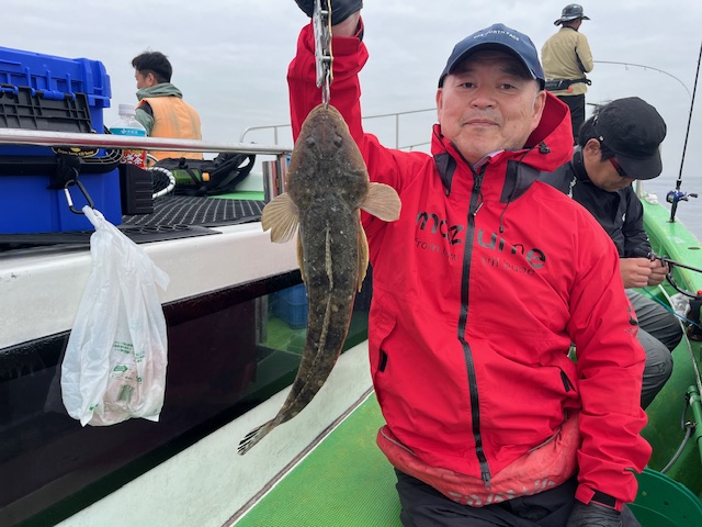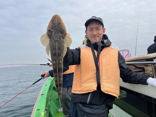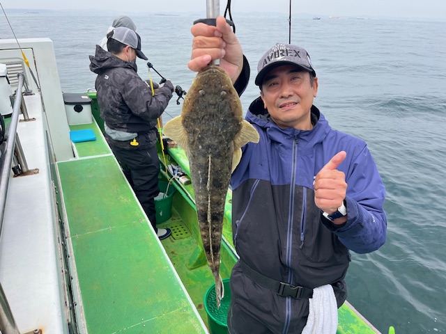 天気 晴れ 水温15.5℃ うす濁り 【マゴチ船】 マゴチ 大きさ 40~48㎝ 数 0~4匹(船中13匹) 竿頭 松戸市 若松 大樹さん 今日は朝から北寄りの風も強め・・。木更津方面に向かうも沖目は波もあり、風影になるポイントから開始。じっくりと流すもアタリは少な目でたまに出せる程度。地味なアタリでなんとか船内に貯めていきました。ちょっとでもナギてくる様ならメインポイントを流したかったですが、昼を回ると風も強まり・・。今日はエサ組の方は皆さんGETも、ルアーの方は数名0匹でした・・。 ※吉野屋では船の前方だけルアー釣りをOKとさせていただきます。その場合は事前にご予約いただき、終日ルアー釣りのみで狙ってもらいます。途中での釣り方の変更はNGとさせていただきます!『エサでアタリは無いからルアーで』なんて甘い考えではオデコ確定です・・。