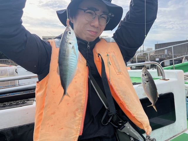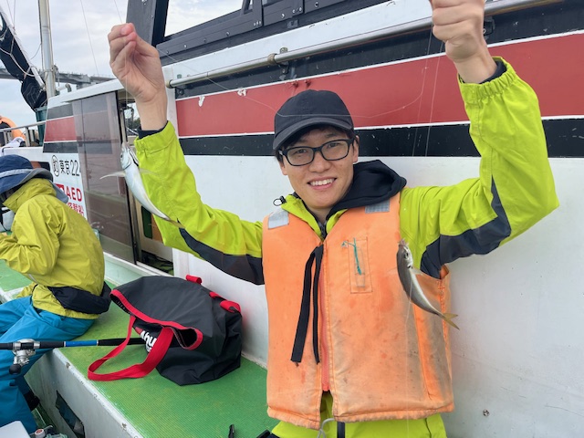 【マアジ船】 マアジ 大きさ 15~27㎝ 数 15~85匹 竿頭 墨田区 佐々木 浩一さん アジ船は扇島沖からスタートしました。コマセが効いてくるとポツポツと順調な食いっぷりに!初心者の方もコツをつかんでくるとダブルも連発し順調に釣り上げていらっしゃいました!ただ、時間の経過とともにちょっと小ぶりが目立ってきたので、皆さん釣ったところでポイントを移動。ストラクチャー周りを狙うと20cm超のアジが好調に!活発にはならないものの帰り際まで続いてくれました!