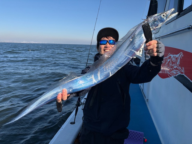 天気 晴れ 水温16.6℃ うす濁り 【タチウオ船】 タチウオ 大きさ 80~110㎝ 数 0~16匹 竿頭 葛飾区 徳山 英秀さん タチウオ船はゆったりと2隻で出船しました。朝イチは湾奥のポイントを転々と捜索しながら移動していると、先発の僚船が型を見たとの事で合流!反応の動きもなくじっくりとのっていられるとポツポツジグにも反応良くHIT!午前中は流し変えの度にアタリも多めで順調に追加していきました!後半になるといつものテクニカルモードに突入してしまうも、ここのところの厳しい感じはなく、上昇気配を感じられました!!