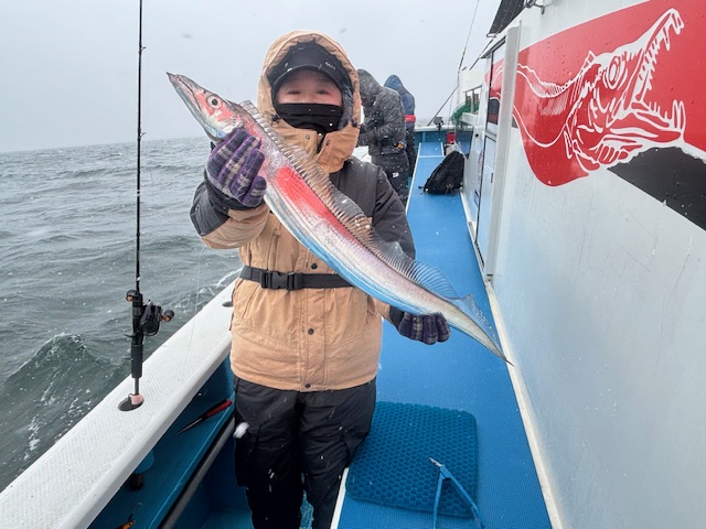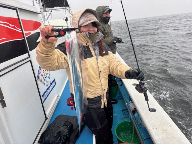 今日は観音崎沖からスタートしました。反応はモリモリとバッチリと出ており雰囲気だけは最高な感じでしたが、アタリっぷりは朝からテクニカルモード・・。フォールのアタリを取れないとまるっきりアタリを出せない様子・・。なんだか一回り小ぶりのタチウオも多いので、深追いせず猿島沖に移動。こちらは低めの反応で何かの拍子でバタバタッとHIT!ただ、こちらも小ぶりがいつもよりまじってきました。