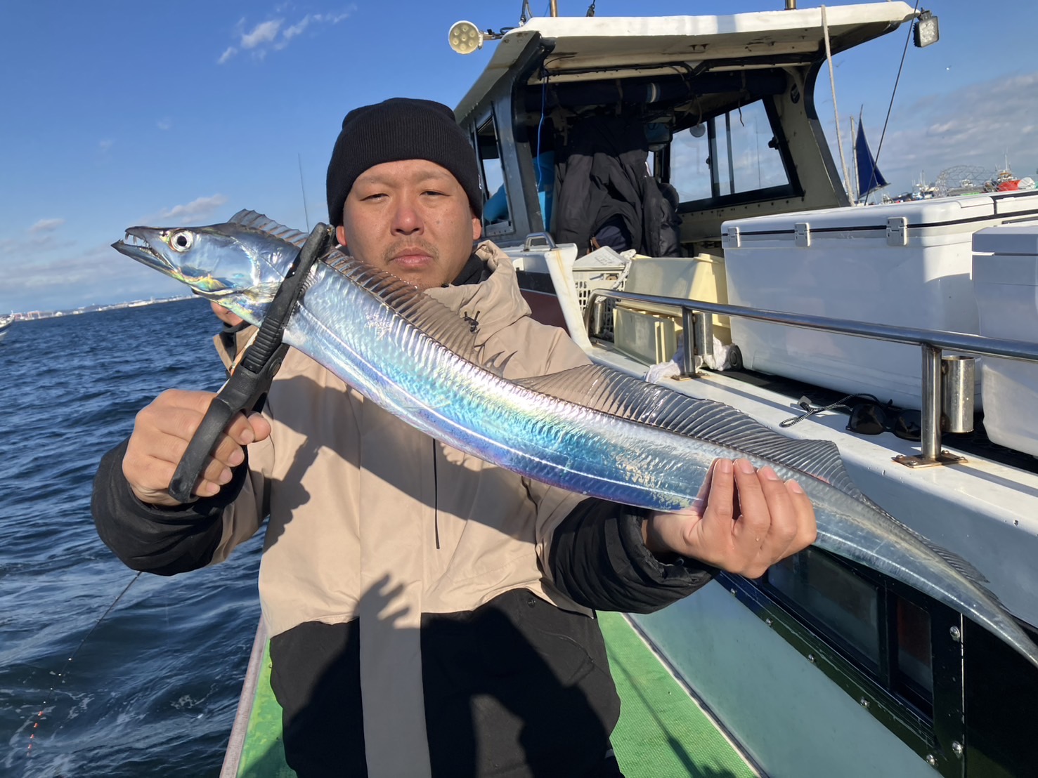 新年初のタチウオ船は3隻で出船しました。ともに観音崎沖からスタート。反応は広範囲に出ており、ジグを落とすとポツポツと順調な感じ。反応はバッチリなのでもうちょい活性も高まっても良さそうでしたが。でもアタリは素直な感じで昼前に貸竿の皆さんもGET!後半は走水~猿島沖に捜索に。こちらでもポツポツと追加でき、新年初ドラゴンも浮上しました!
