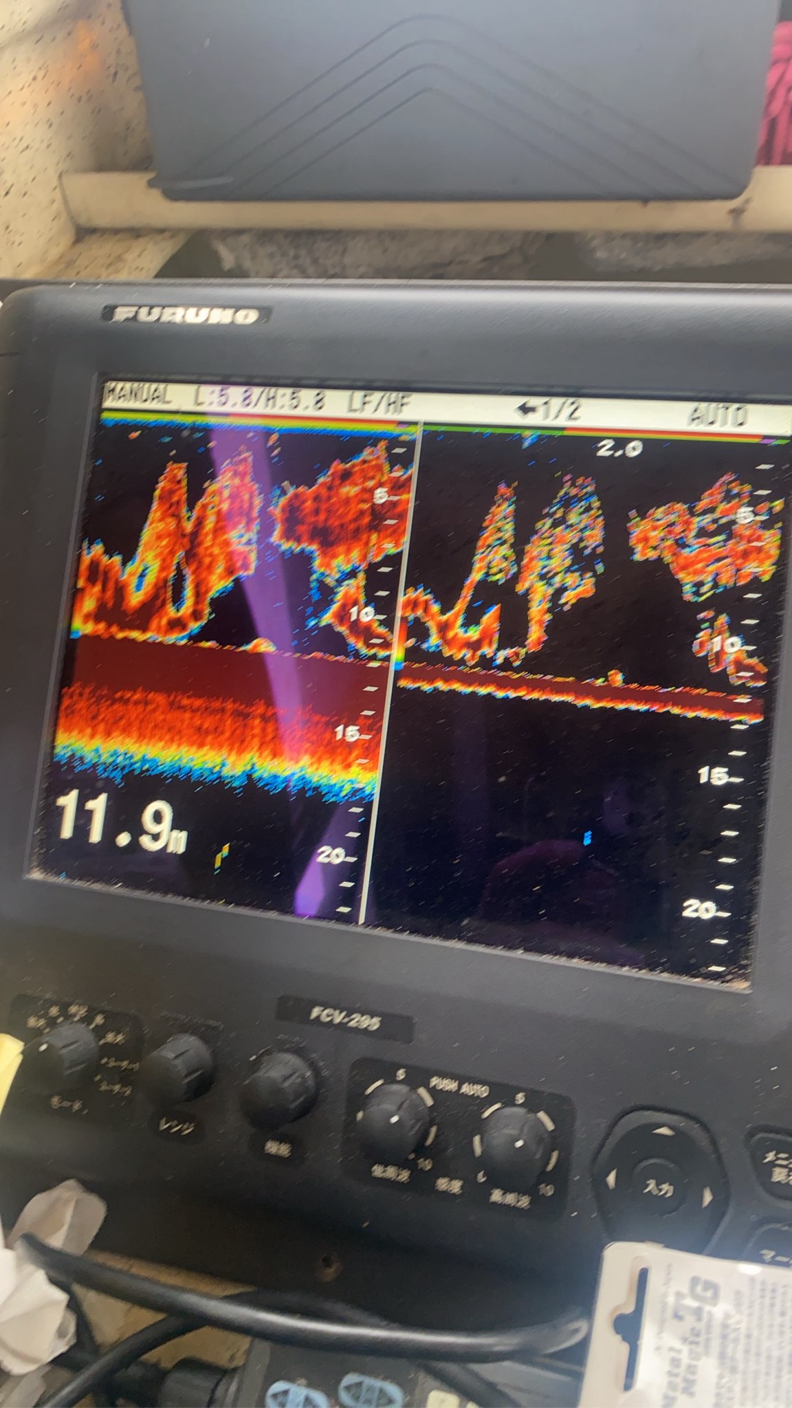 今日は走水沖からスタートしました。海底付近に反応も点在しており、ジグを落とすとポツポツと順調にアタリが出せました!昼過ぎまで狙いお土産分は十分に確保できたところで、湾奥のポイントを捜索に北上。各所で細切れ反応ながら確認でき、あて変える度に肉厚の良型のタチウオがポツポツと!明日は北寄りの風が吹く予報なので、湾奥のポイントを主体に狙っていきます!