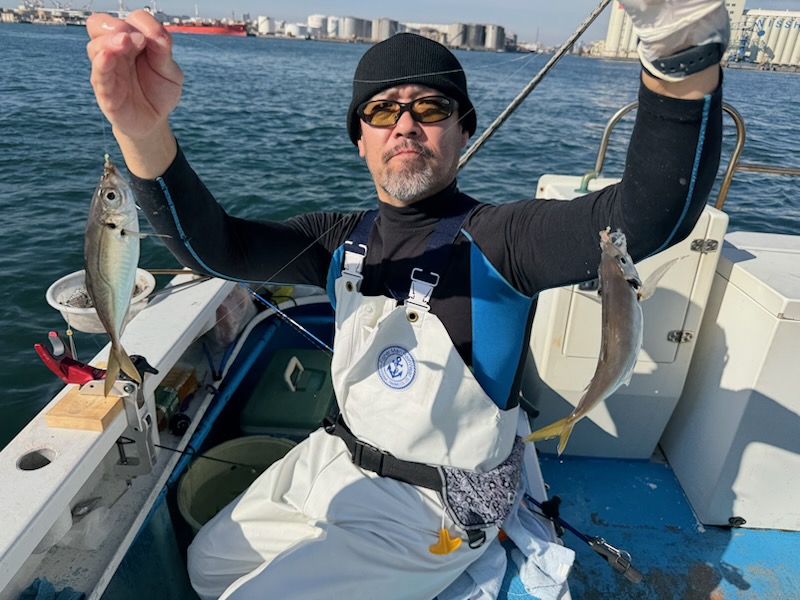 今日は扇島周辺のポイントから開始。10mほどの浅場に活発な反応があり、道具を落とすとすぐに活発な食いっぷりに!慣れない方もコツをつかむとダブルを連発!1時間ほどでお土産分はバッチリと確保!ポイントを移動しサイズUPを狙いに移動。こちらではコマセが効くまでちょっと時間が掛かりましたが、始まってくると25cm超の良型もポツポツとまじり、帰り際まで好調な食いっぷりでした!