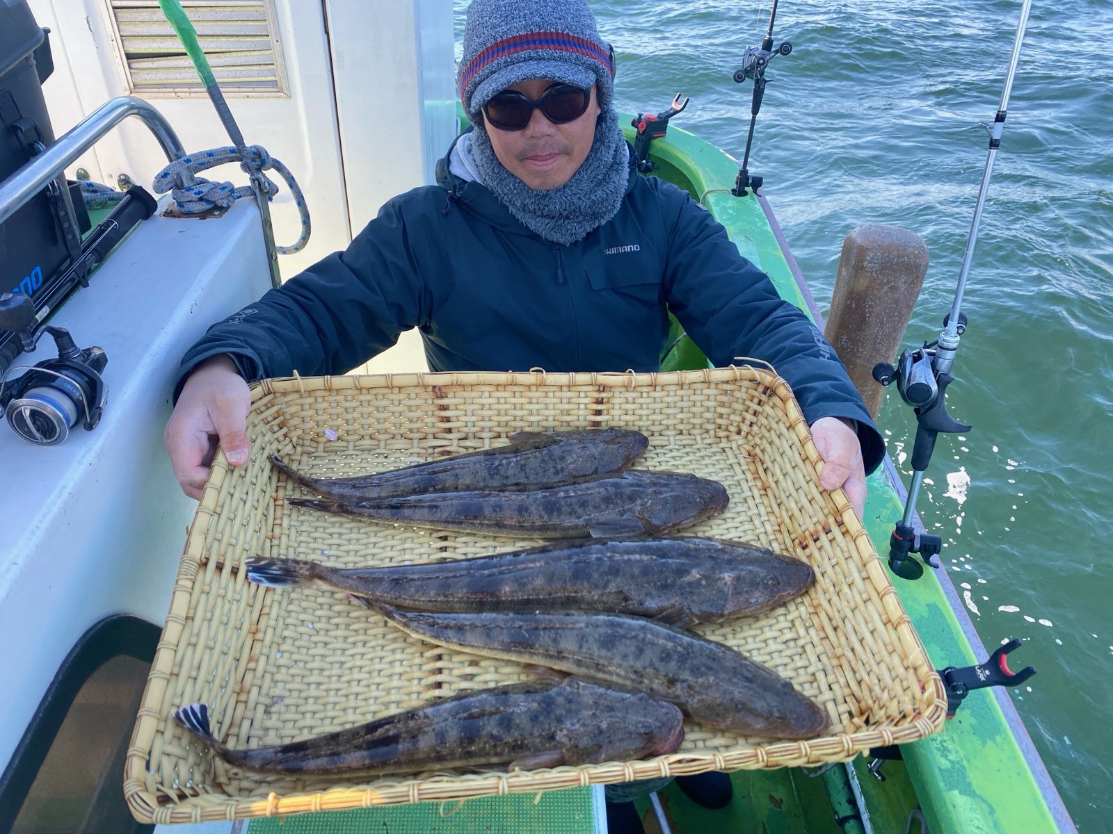 天気 雲→晴 水温15.2℃ うす濁り 【マゴチ船】 マゴチ 大きさ 40~55㎝ 数 3~12匹(船中33匹) 他、ヒラメ 竿頭 足立区 上野 英夫さん 今日も木更津沖周辺のポイントからスタート。下げ潮も適度に流れており、大流しをして朝から好調にアタリが出せました!その後もブラブラ流し込んで海堡周辺まで広範囲に狙い、たまに連発する時間帯も!ルアーの方も順調にアタリも出せ、皆さんGETと、ナギの海ならここのところバッチリ決まる日が続いております!