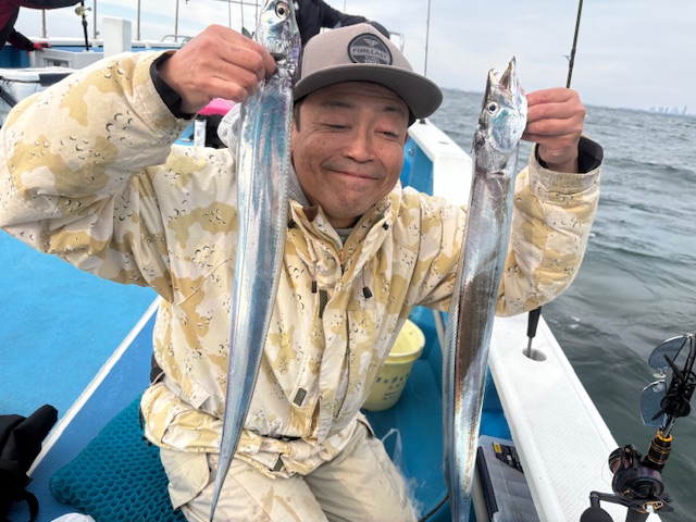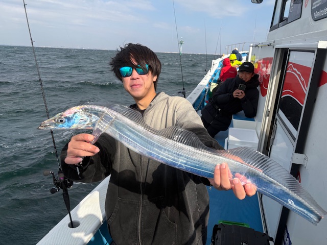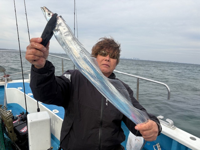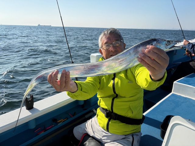 天気 雲→晴 水温19.1℃ うす濁り 【タチウオ船】 タチウオ 大きさ 80~102㎝ 数 0~35匹 竿頭 草加市 井上 鋼大さん タチウオ船は湾奥の海域を狙いました。朝イチは細切れながら反応も点在しており、ジグを落とすとポツポツとHIT。小移動を繰り返しての釣りでしたが、反応がまとまってくるとじっくりと乗っていられ好調な食いっぷりに!途中、アタリの遠のく時間帯もありましたが、下げ潮が流れてくるとまたまた好調にHIT!サイズは沖目より一回り良く、F4クラス主体!ドラゴン級はおあずけも、肉厚なタチウオでそろいました! 今後も湾奥の浅場から走水沖の深めまで日によって狙い分けます。どちらでも対応できるタックルを!