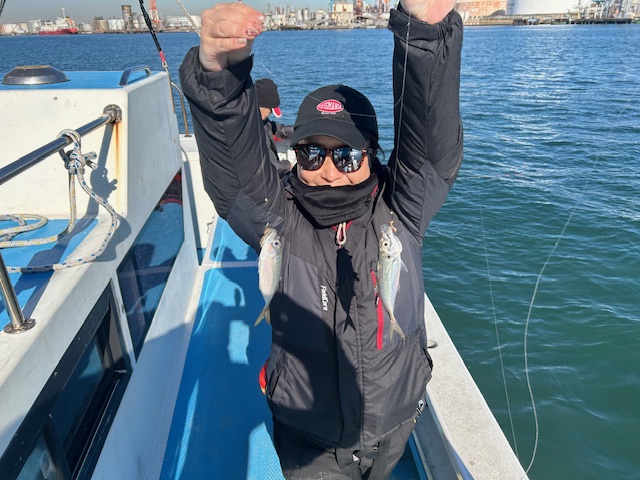 【マアジ船】 マアジ 大きさ 16~28㎝ 数 29~99匹 竿頭 江東区 鈴木 三智子さん 朝イチは気になるポイントから開始。コマセを撒いていると20cm前後のアジ主体ながら活発な食いっぷりに!初心者の方も皆さんひと通り釣ったところで、サイズUPを狙いに扇島沖に移動。こちらはコマセが効くまでちょっと時間が掛かりましたが、スイッチが入るとまたまた活発に!25cm前後と一回り良型そろいで帰り際まで続いてくれ、手慣れた方は束釣り達成なさってました!