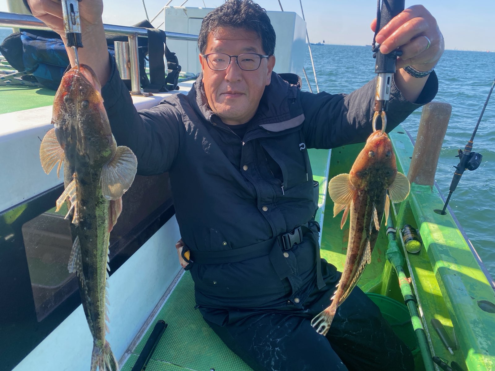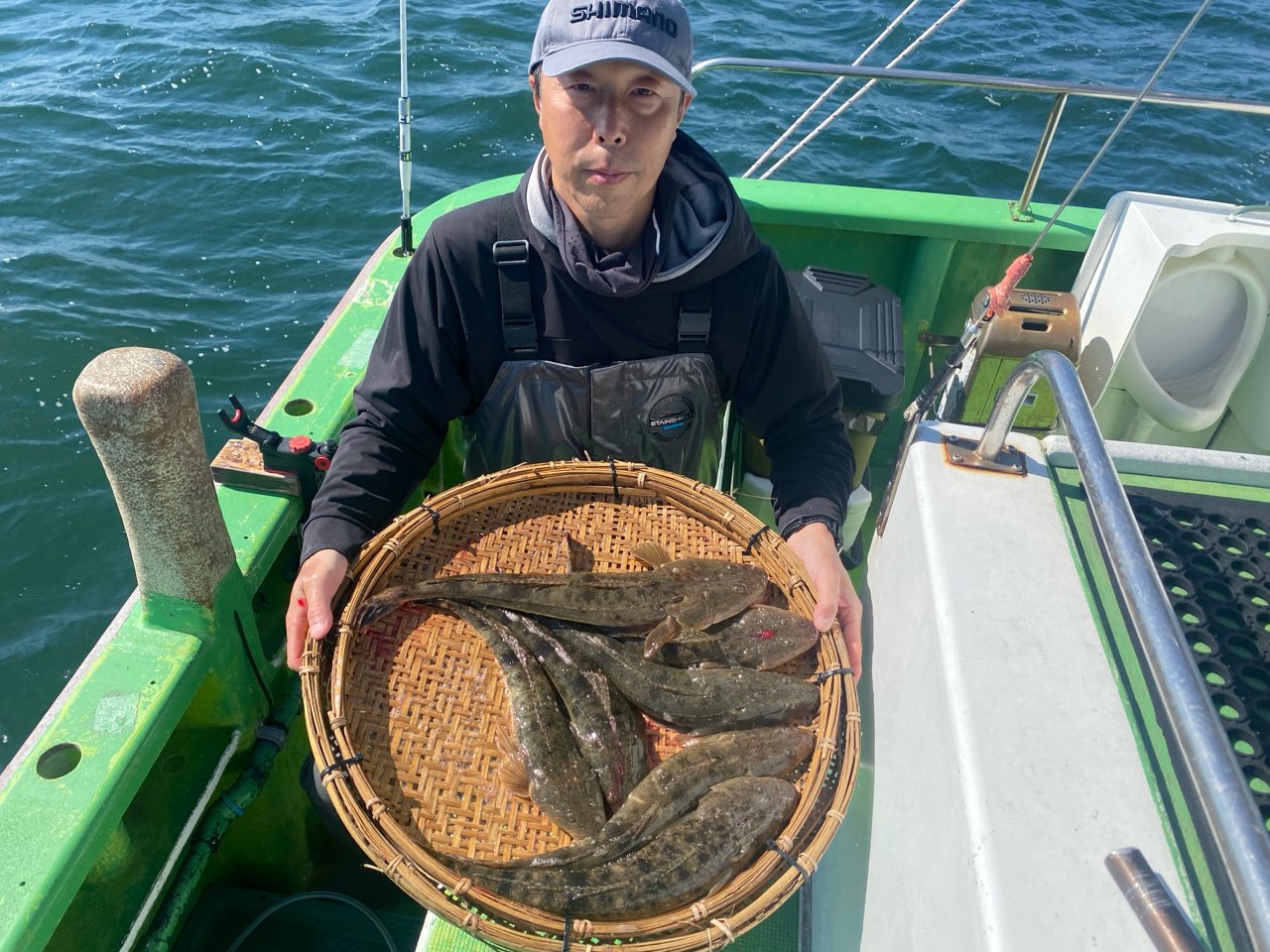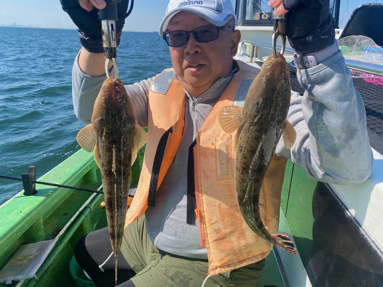 天気 晴れ 水温14.5℃ うす濁り 【マゴチ船】 マゴチ 大きさ 40~55㎝ 数 0~10匹(船中74匹) 他、ヒラメ・スズキ 竿頭 足立区 野村 雄大さん 今日は木更津沖~海堡周辺を行ったり来たりと狙いました。潮はそれほどいい流れではないものの、各所でポツポツと順調にアタリが出せました。バラシもありましたが、GET率は高めで順調に船内に!時間帯の寄っては連発して大忙しになる場面も!後半になっても順調さは変わらず、ルアーの方お一人以外は、初心者の方もGETでき今日も大漁キープでした!
