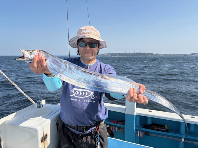 【タチウオ船】 タチウオ 大きさ 65~115㎝ 数 0~4匹 竿頭 上尾市 遠藤 剛さん 他、 今日からタチウオ船の再開!海堡周辺から捜索しながらスタートしました。なかなか反応も見当たらず航路伝いに探りながら南下していると、金谷沖で僚船が型を見れたとの事で合流。130mほどの深さでしたがようやくHIT。ただその後はなかなか反応もまとまらず、、。後半は走水~猿島沖に。ショボ目の反応でしたが、なんとかメーターUPをポツポツと追加でき帰航となりました。 ちょうど今の季節は群れも広範囲に散らばっている感じ。どこでまとまるか次第で勝負が決まります、浅場から深場までいろいろ探っていきますのでどの水深でも対応できるよう、100~150のジグまでお持ちください!