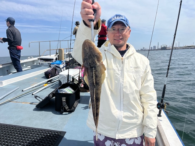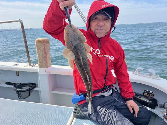 天気 くもり 水温14.8℃ うす濁り 【マゴチ船】 マゴチ 大きさ 40~63㎝ 数 0~6匹(船中25匹) 他、ヒラメ 竿頭 江東区 金持 浩司さん 今日は久しぶりのナギなので木更津方面から開始。流れはバッチリもなかなかアタリの遠い感じで、いつもより沖目を流すとポツポツとHIT!全体的にサイズは良く、60cm・63cmとランカー級も久々に浮上!間が空きながらもたまにアタリは出せ順調に拾っていきました。後半になると南西の強風になりアタリも取りづらくなってしまいGET率は低下・・。今日は皆さんアタリは出せましたがお一人だけ0のまま帰航となりました。