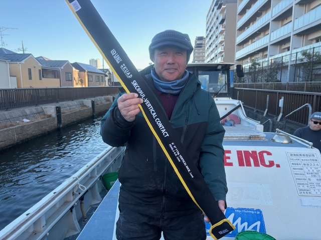 【マゴチ船】 マゴチ 大きさ 42~56㎝ 数 2~9匹(船中23匹) 他、ヒラメ・ホウボウ等 竿頭 足立区 和久井 裕二さん 新年初出船は海堡周辺のポイントから。風も穏やかでベタナギの最高の条件!潮も適度に流れており、早々からアタリもポツポツと好調に出せ、玉網も忙しく!ただ、昼前になると南西の風も強めに吹いてくるとアタリも激減・・。後半はアタリも減り、ちょっと早めに帰航しました。