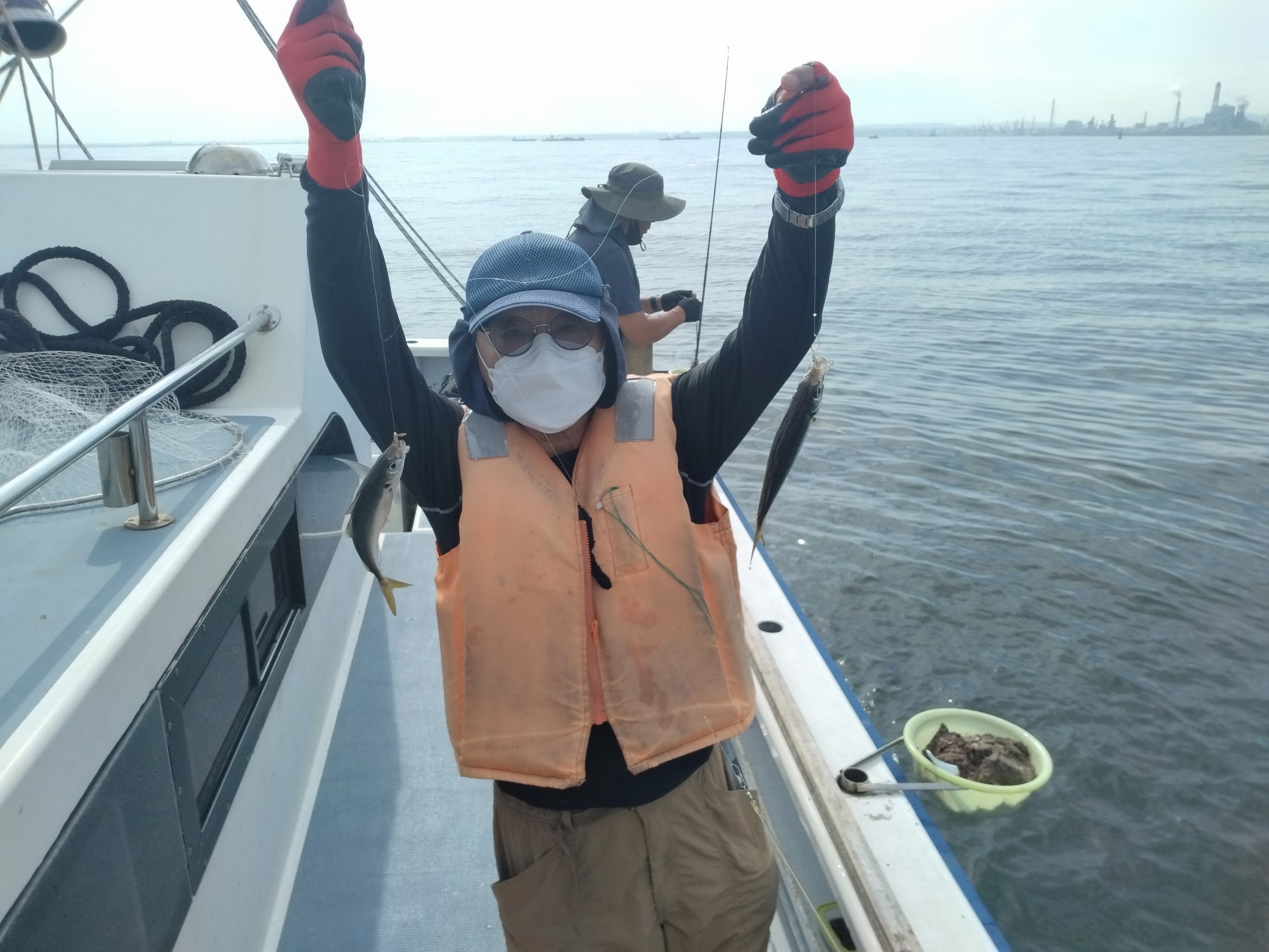 【マアジ船】 マアジ 大きさ 18~26㎝ 数 21~62匹 竿頭 世田谷区 小林 佑一さん マアジ船は木更津沖からスタート。ちょっと深めのポイントにモリモリ反応があり、コマセが効いてくると20~25cmのでっぷりとしたアジが好調にHIT!時間帯によっては入れ食い状態になる場面も!貸竿でチャレンジの方もダブルを連発!帰り際まで活発な感じで続いてくれました!