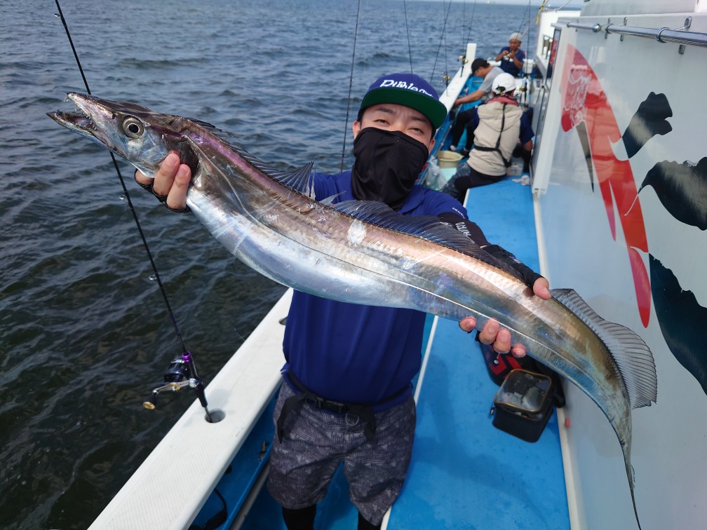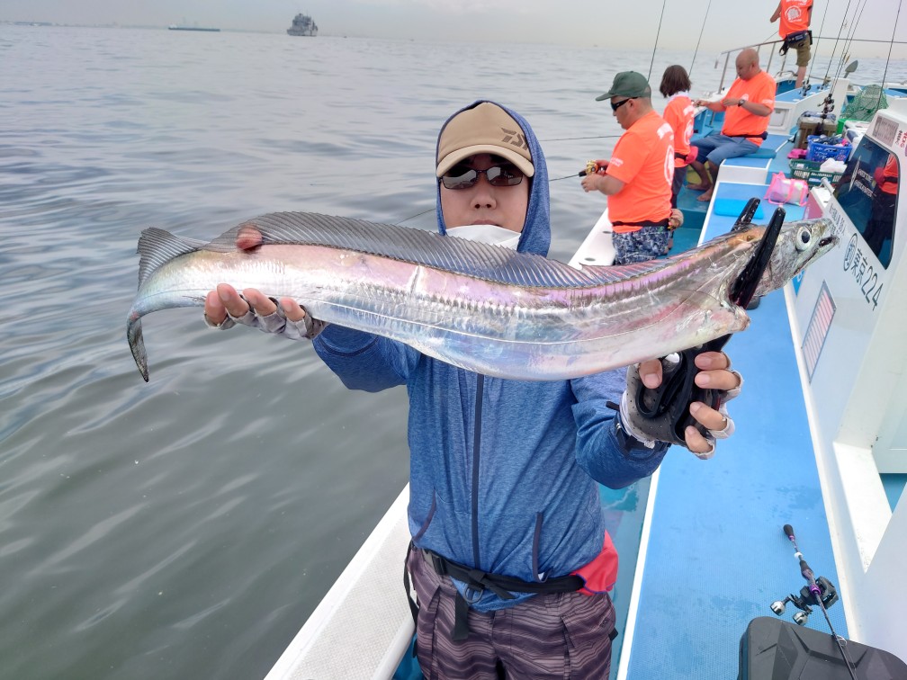 【タチウオ船】 タチウオ 大きさ 65~126㎝ 数 0~40匹 竿頭 あきる野市 伊藤 賢二さん 今日は2隻で出船しました。浅場のポイントから捜査するも、反応も少なく型を見るのがやっとな感じ・・。海堡周りも同じようで、今日は早めに走水沖に。こちらは反応もバッチリでポツポツと好調なアタリっぷり!手慣れた方は連発してHITさせていらっしゃいました!時折、メーターUPやドラゴン級も浮上!帰り際まで好調に続きましたが、どうしてもお一人だけ0匹のままでした・・。