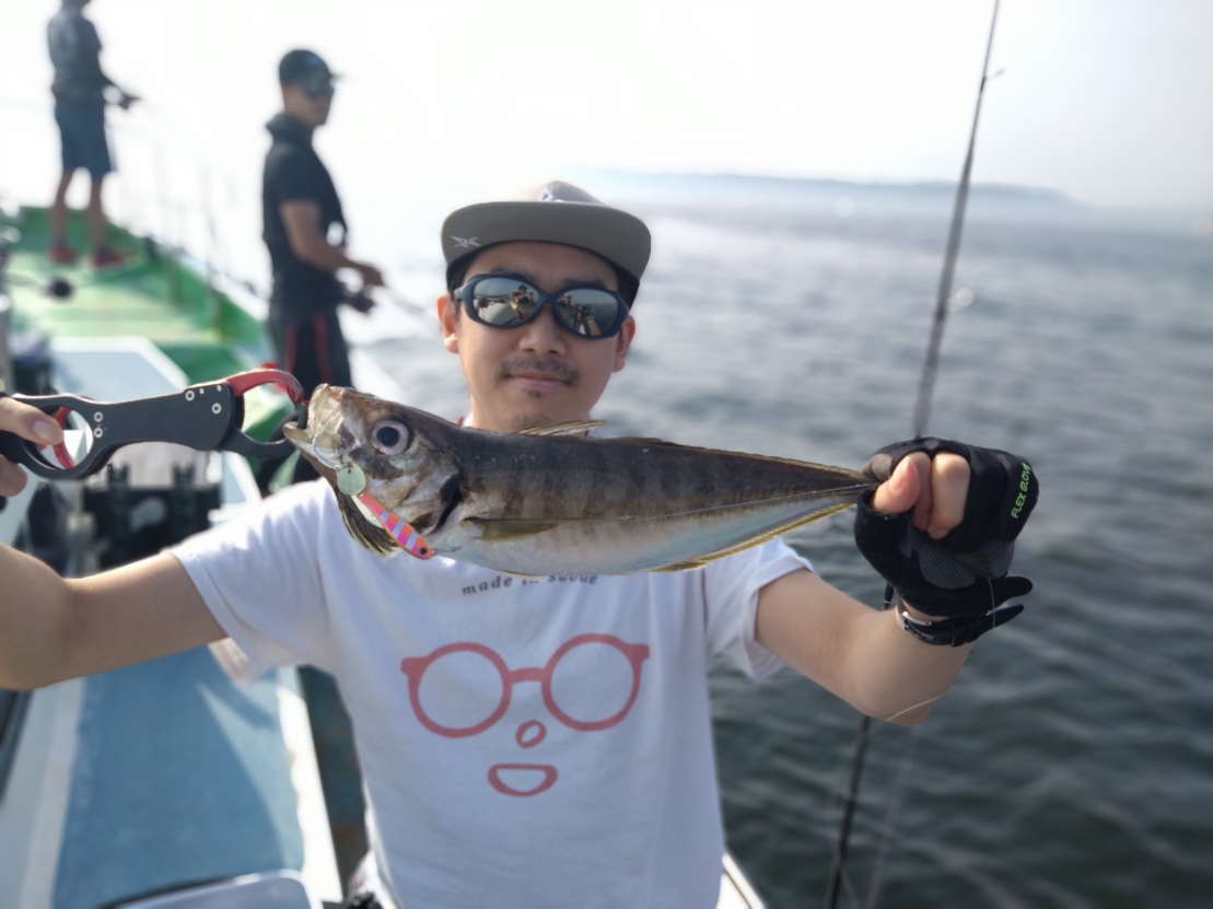 今日も浅場のポイントからスタート。ショボ目ながら反応も点在しており、流し変えの度にポツリとHIT。走水を狙っていた僚船も下げ潮がカッ飛んでいるとの事で、前半はじっくりと浅場を狙いました。10時を過ぎるとアタリも遠のいてきたので、走水沖に移動。60mの海底付近に反応は確認できるも、アタリっぷりはかなりテクニカル・・。皆さんフォールのアタリに苦戦なさっているようで、かなり厳しい感じでした・・。
