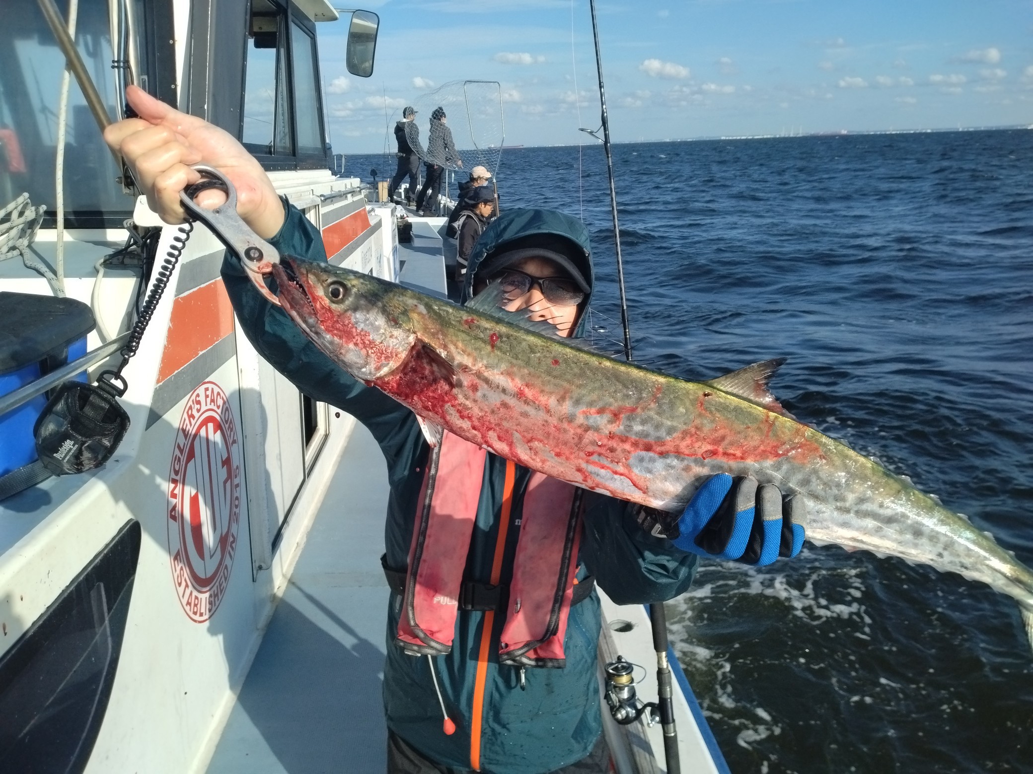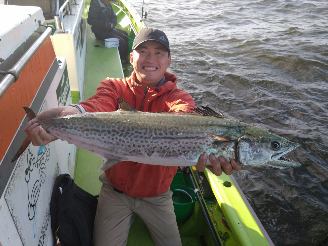 【サワラ船】 サワラ 大きさ 65~93㎝ 数 0~2匹(2隻で8匹) イナダ・ワラサ 大きさ 45~78㎝ 数 0~2匹(2隻で4匹) 他、極太タチウオ 竿頭 市川市 高橋 亮太郎さん サワラ船は近場のポイントから。朝イチは鳥山などもありましたが、ベイトがざわついていただけ・・。その後は反応をじっくりと流し込んで2隻ともに早々にサワラをGET!アタリが出せる流しと出せない流しもありましたが、皆さんにひたすらキャストを繰り返してもらい、本命だったり、ワラサ・イナダ・タチウオなどHITするも、もうちょい盛り上がってほしいところでした・・。今日は21号船は5匹・いつもの7号船は3匹のサワラをGETとイマイチでした・・。