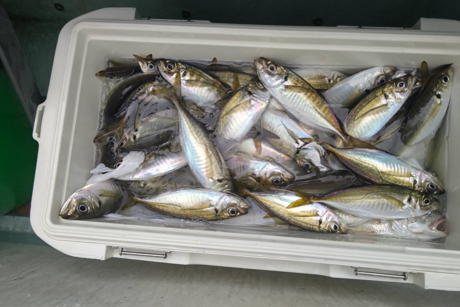 今日も北寄りの風が強めに吹いており、木更津沖の風影のポイントからスタート。10mほどの水深で朝イチから活発な反応が!コマセが効いてくると20cm前後のアジ主体に活発な食いっぷりに!初心者の方もダブルを連発!いい感じに続いておりましたが、やがて20㎝以下の小ぶりのアジが優勢に・・。ポイントを変えちょっと深めに移動。こちらは海底からタナ5mほどでまたまた活発に!サイズも良く25cmを超える良型も多めで、帰り際まで活発な感じで続いてくれました!初挑戦の方も50匹超と、久々の大漁となりました!