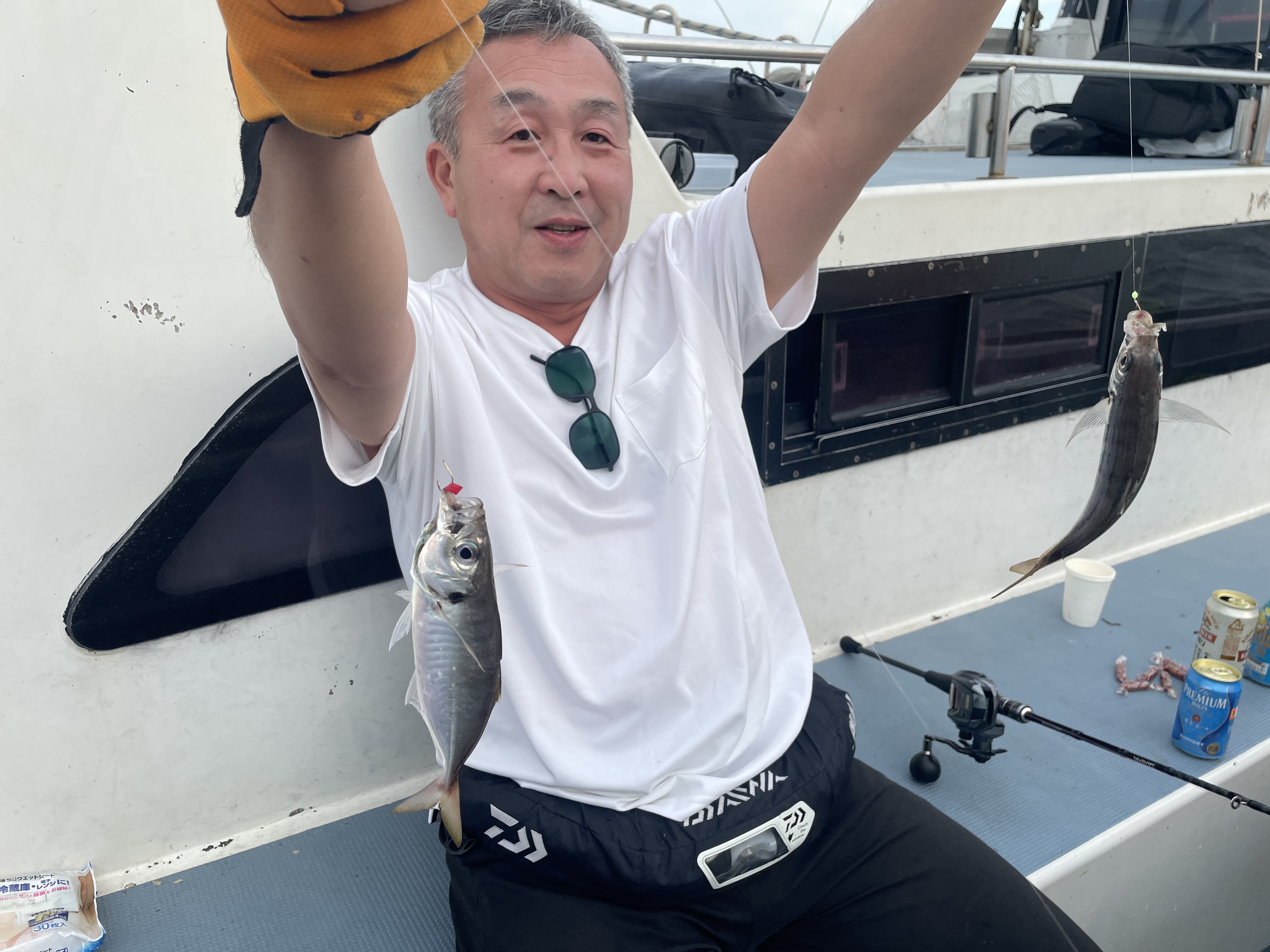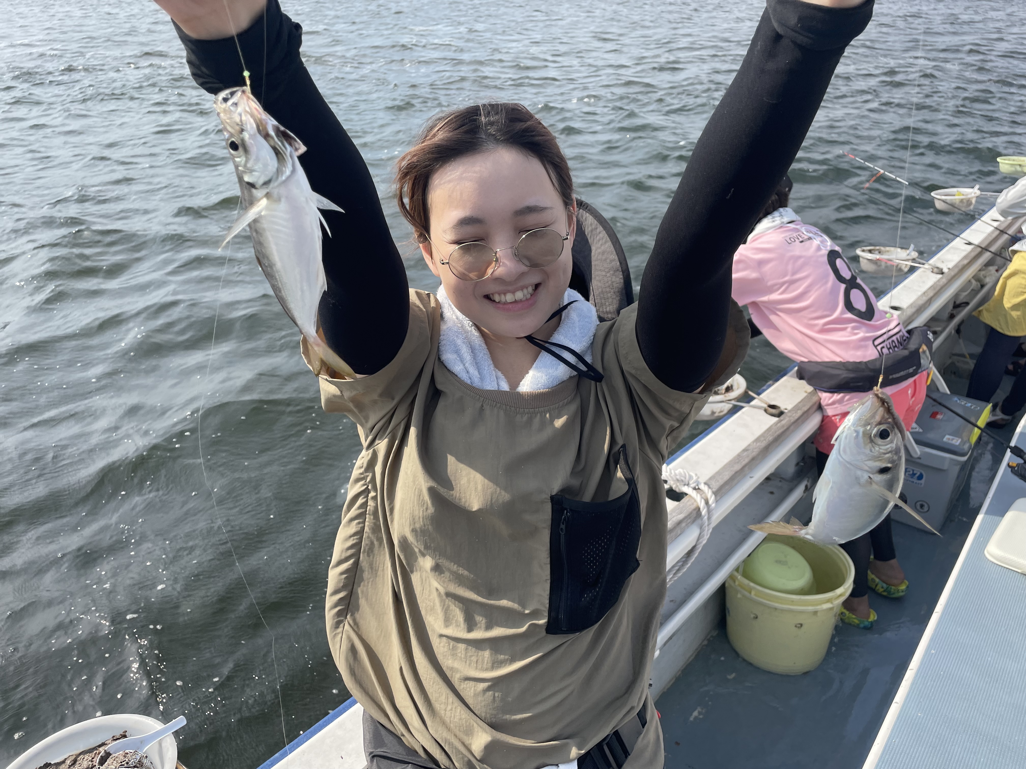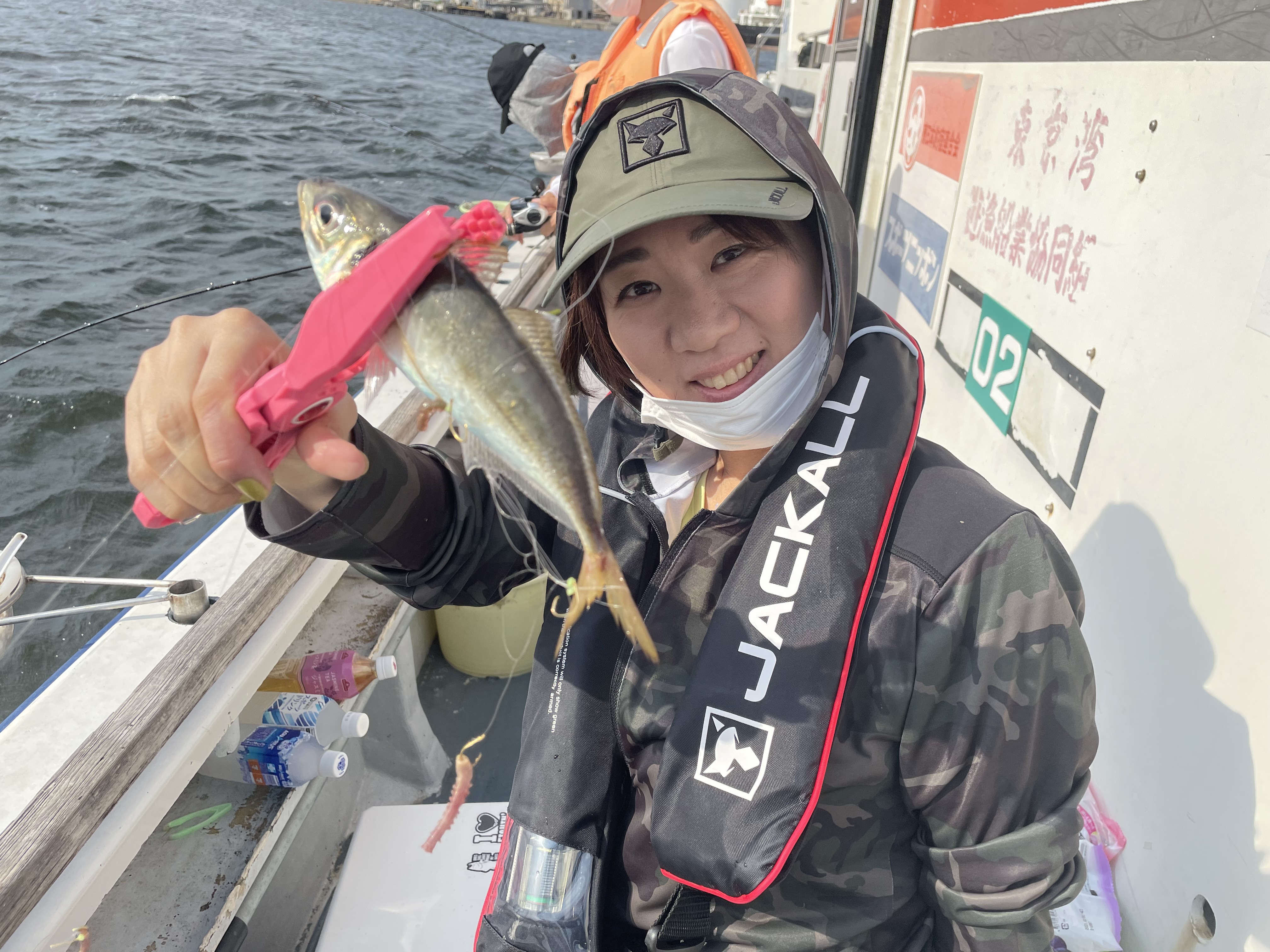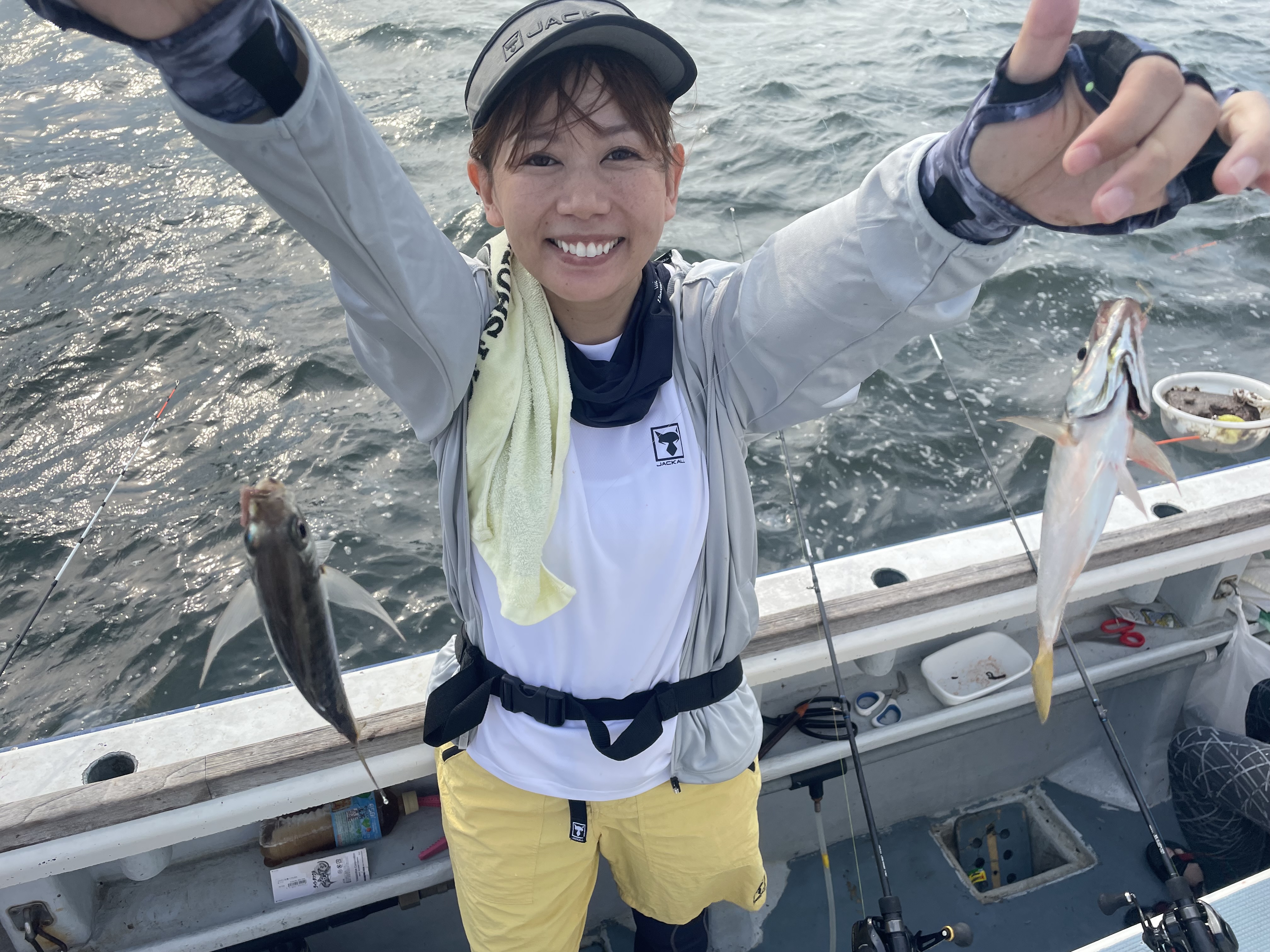 【夕まづめアジ船】 マアジ 大きさ 18~25cm 数 10~58匹 竿頭 文京区 小泉 祐さん 2週間ぶりの夕まづめアジ船は扇島沖からスタート。到着早々からモリモリ反応が!昼の食い渋りが嘘のように、初っ端から活発な食いっぷりに!初心者の方も多くご乗船でしたが、コツをつかんだ方から入れ食いに近いアタリっぷりに!サイズも20cm超の中アジ主体で、帰り際まで活発な感じが続きました!今日のトップはバチコンで狙っていたお姉さん!アジにヤル気があるときはワームにもガンガンHITします!