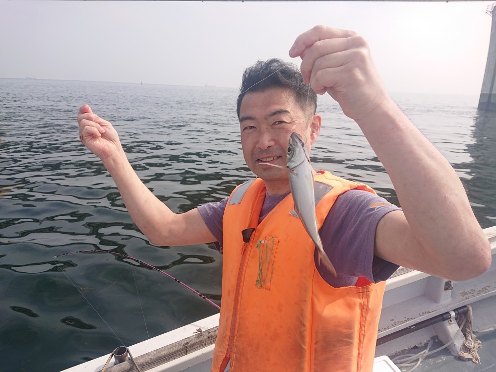 今日も木更津沖からスタート。水深10mほどのポイントに反応が点在しており、錨を入れスタート。反応はバッチリでしたがその割にはアタリっぷりはポツポツ程度。ただ、サイズは皆良く20cm超の中アジから30cm近くある良型そろい!慣れない方は水面でポロリと落ちてしまう場面も多々・・。それほど活性は高くはないので、タナ2m前後でゆっくり竿を上下させて誘いをかけないとアタリが出せない様子・・。置き竿の方は数が伸びない感じでした・・。