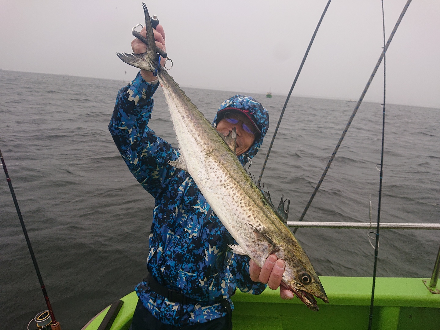 【タチウオ船】 タチウオ 大きさ 60~120㎝ 数 1~14匹 竿頭 江東区 小浜 健司さん 今日は走水沖からスタート。反応はバッチリ出ていて、アタリはあるようですがなかなか針掛かりさせるのには難しい様子。群れも浮いていて40m付近まで上昇しているも、やや小ぶりが優勢・・。昼を過ぎると時折、メーターUPもちらほらまじり、皆さんのやる気もUP!魚影は相変わらず濃いので、今後に期待です!
