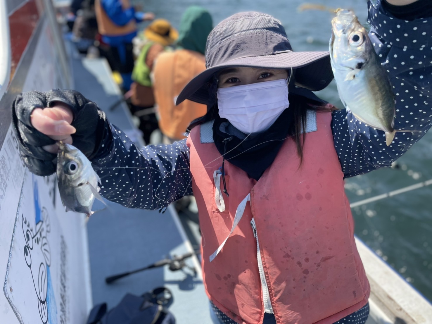 【マアジ船】 マアジ 大きさ 16~26㎝ 数 6~55匹 竿頭 葛飾区 蜂谷 美里さん 今日は2隻で出船しました。ともに木更津沖からスタート。朝のうちは、下げ潮も速いので潮の緩いポイントを狙いました。反応は海底付近に出ており、ポツポツ釣れるも、中層にイワシの群れが入ってくるとなんだかアジのアタリも遠のき。またしばらく粘っているとアジもポツポツといった感じでした。