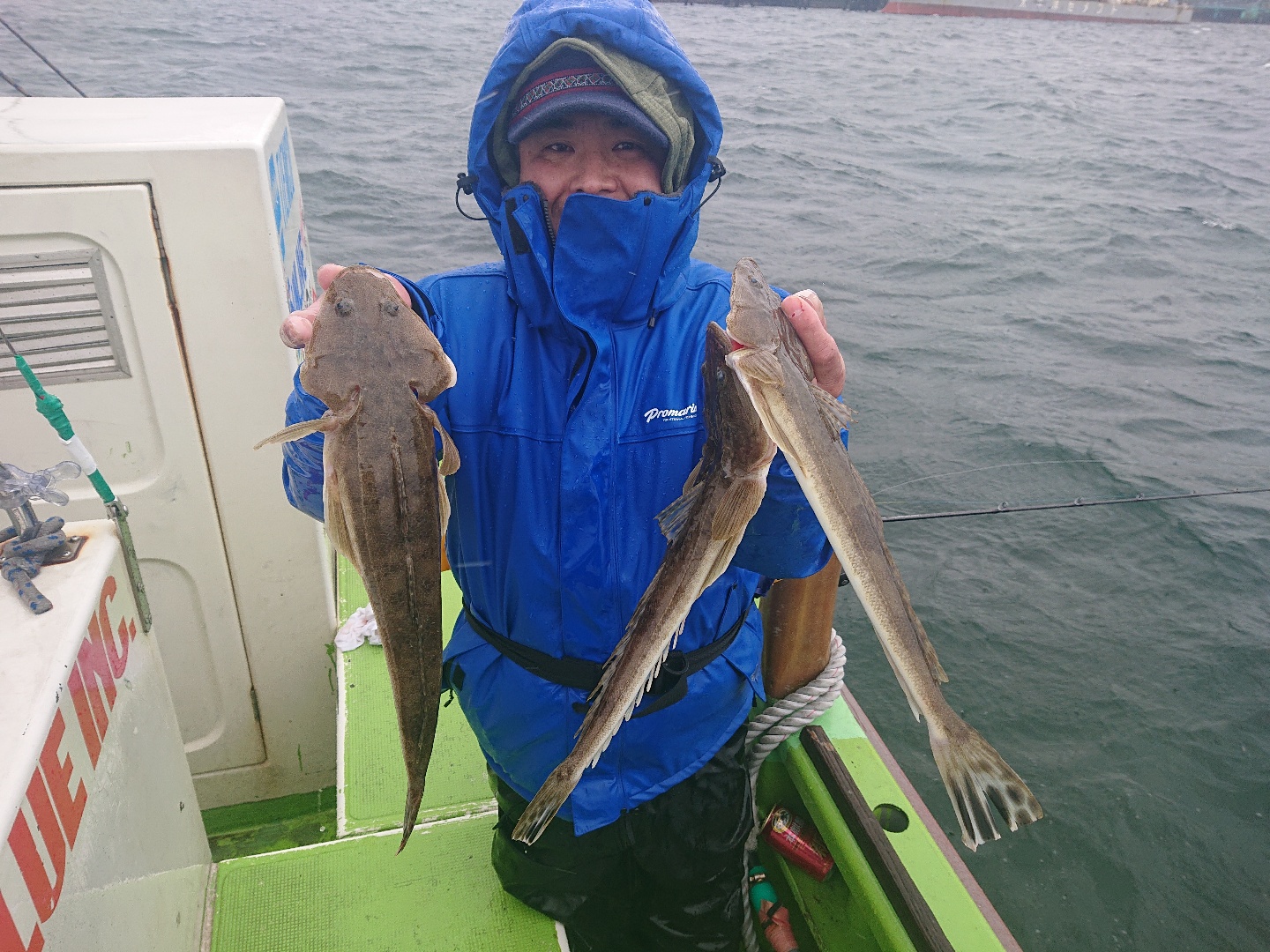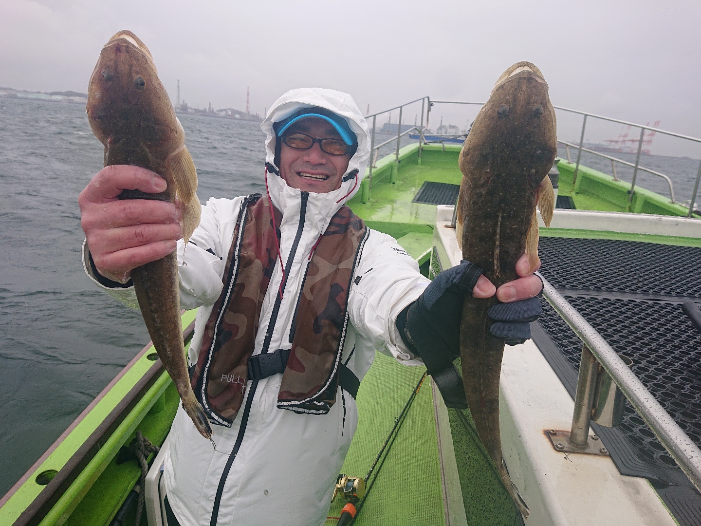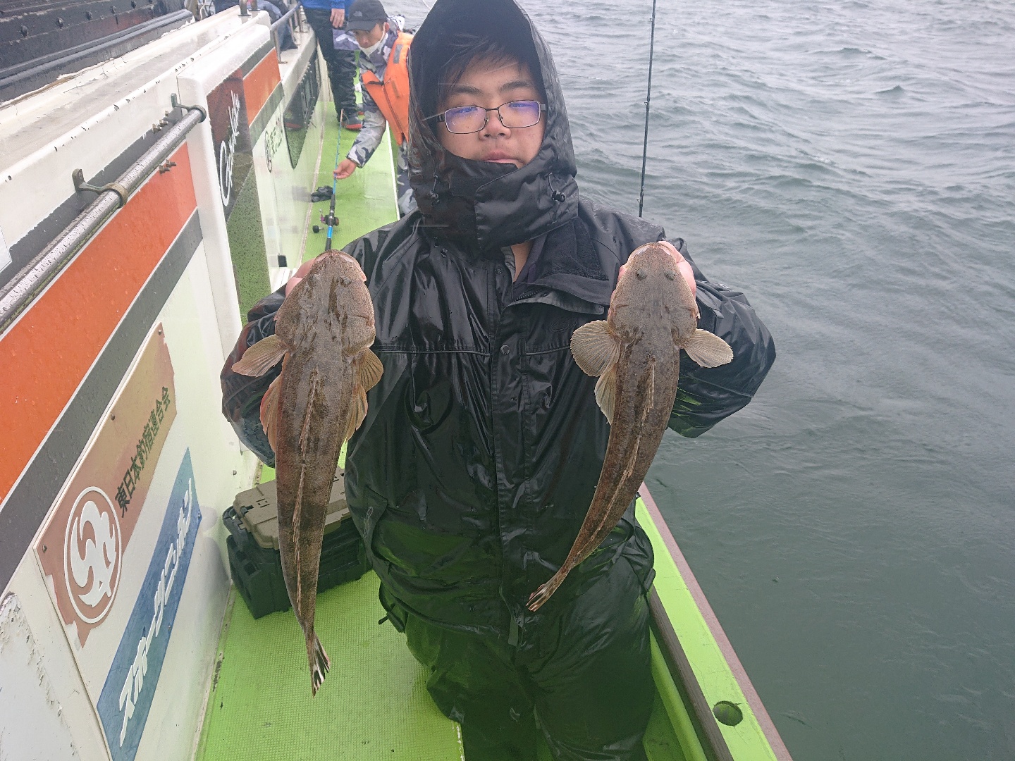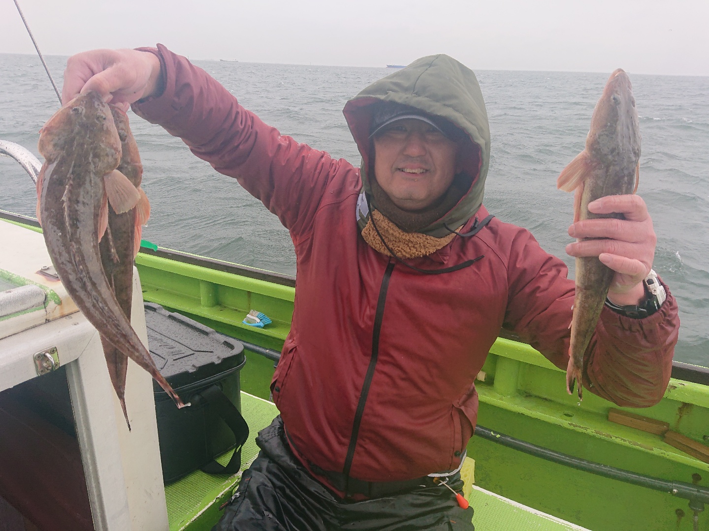 天気 雨 水温12.6℃ うす濁り 【マゴチ船】 マゴチ 大きさ 38~48㎝ 数 1~3匹(船中15匹) 竿頭 足立区 古仲 一宏さん 他1名 今日は朝から冷たい雨・・。北風も強めで木更津沖はあきらめ、富岡沖に向かいました。こちらは波もなくフラットな海でしたが、真冬のような寒さ・・。コンディションはキツかったですが、アタリは1流しに数回は出せ、順調に船内に!その後もポツポツと続き、昼前に皆さんGET!すると次第にキャビンに避難してしまう方も多々・・。協議の結果、『みんな釣ったので帰りましょう』との事で12時過ぎに帰航となりました。