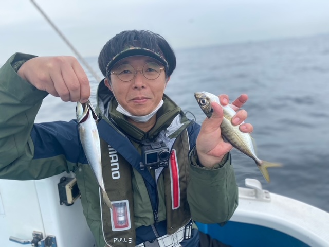 【マアジ船】 マアジ 大きさ 16~35㎝ 数 2~60匹 竿頭 茂原市 御園生 知寛さん マアジ船は今日も2隻で出船しました。1隻は扇島沖、もう1隻は木更津沖からスタート。ともに活発な反応があり、朝イチから好調な食いっぷりに!下げ潮が緩んでくると2隻ともに木更津沖で合流し、沖目のポイントで良型狙いに。ここでは30cm級もちらほらと浮上!最大は35cmとでっぷりしたアジが!後半は幾分サイズダウンしましたが、時折良型まじりで帰り際まで順調にアタリが出せました!