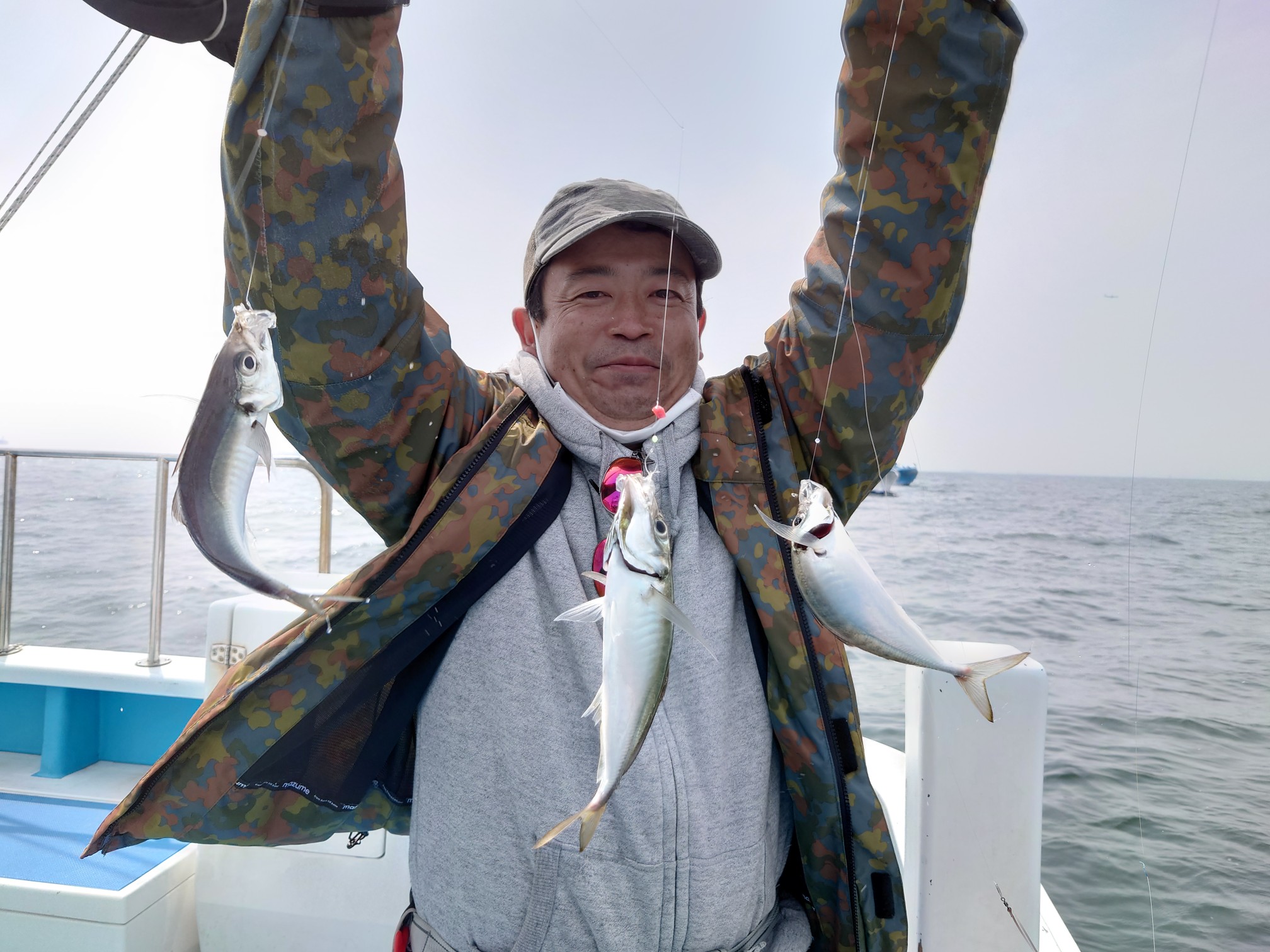【マアジ船】 マアジ 大きさ 18~30㎝ 数 20~52匹 竿頭 杉並区 山本 太一さん 今日も木更津沖からスタート。早々に活性の高そうな反応に遭遇!コマセが効いてくると20cm超の中アジ主体でポツポツと好調にHIT!反応がさらに盛り上がってくると、アンカーを入れじっくり狙いました!途中、アタリの遠のく時間帯もありましたが、またまた好調に!頭数は伸びないものの、皆さん40・50匹とクーラーはずっしりと重くなりました!