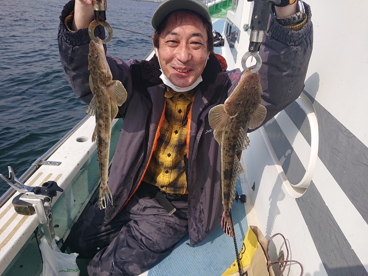 天気 くもり 水温13.8℃ うす濁り 【マゴチ船】 マゴチ 大きさ 38~50㎝ 数 1~9匹(船中30匹) 竿頭 足立区 上野 英夫さん 今日は富岡沖方面を狙いました。根回りをじっくり流し込んでなんとかポツポツとアタリが出せました。潮先にお座りの方も順調にGETなさって、船中まんべんなくアタリが出せ、皆さんGET!派手なアタリっぷりはないものの、帰り際まで順調に釣れてくれました!