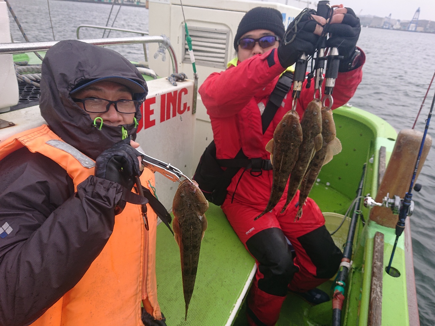天気 雨 水温13.2℃ うす濁り 【マゴチ船】 マゴチ 大きさ 38~48㎝ 数 0~9匹(船中23匹) 他、スズキ 竿頭 狭山市 上小路 祐樹さん 朝イチは木更津沖からスタート。流し変えの度にポツポツと順調にアタリが出せ追加できるも、雨と北風が強まってきて昼前に富岡沖に移動。こちらは波もなくじっくり流し込んでアタリはポツポツと出せました。初心者の方々はアタリが出せ、すぐに合わせてしまう場面もありもったいない感じでしたが、手慣れた方は順調にGET!今日はワインドで狙ったルアーマンの方が竿頭!ワインドは玄人向けですが、マゴチにも好反応のようです!