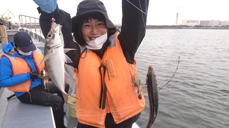 【マアジ船】 マアジ 大きさ 16~33㎝ 数 15~96匹 竿頭 草加市 野島 秀幸さん マアジ船は2隻で出船しました。扇島沖と木更津沖に分かれてスタート。木更津組は朝イチから活発な反応で入れ食いな感じに!ただ、小ぶりが次第に優勢になり、アタリが落ち着いたタイミングで移動。沖目のポイントで今度は20㎝超の中アジ主体で好調な食いっぷりが帰り際まで続いてくれました! 一方、扇島沖を狙った方はストラクチャー周りで活性の高い反応に遭遇!こちらは25cm前後の良型のアジが主体!しばらく狙っていなかった群れのようで入れ食いでスタート!徐々に活性も落ち着きましたが、サイズがいいので最後まで狙い、順調に続きました!