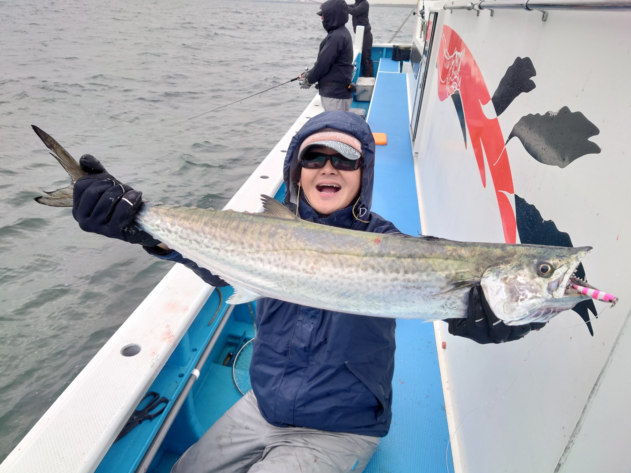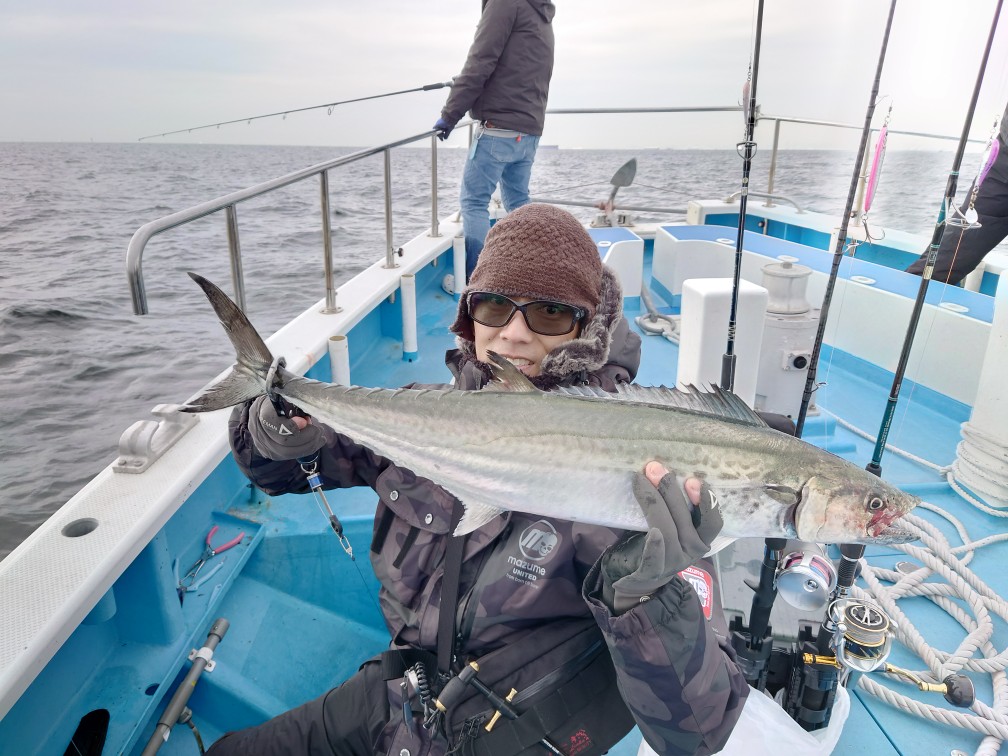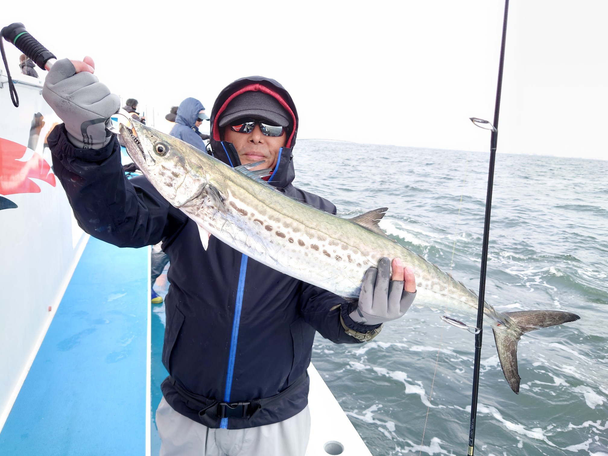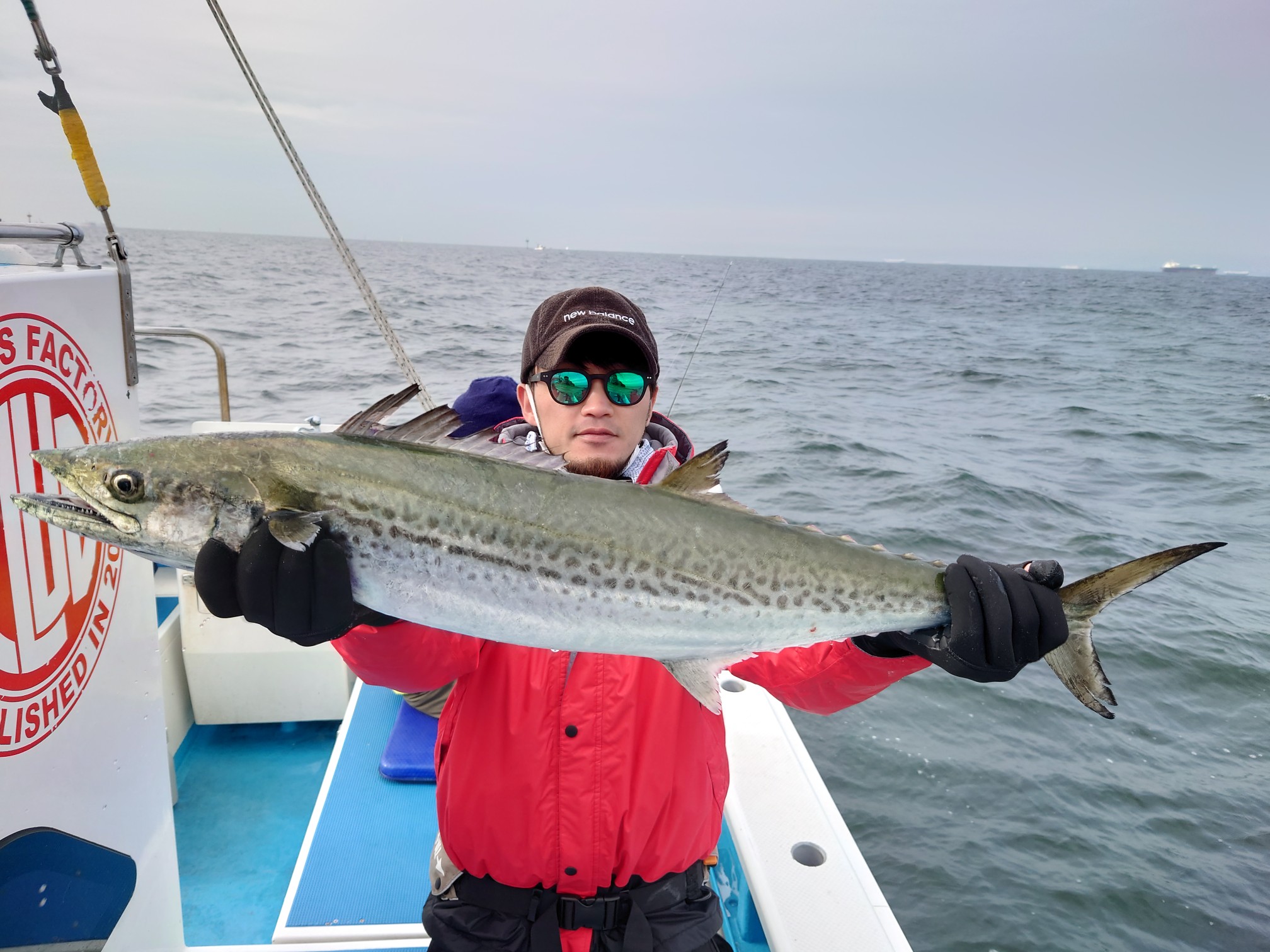 【サワラ船】 サワラ 大きさ 75~94㎝ 数 0~2匹(2隻で11匹) イナダ 大きさ 45~55㎝ 数 0~10匹 竿頭 三鷹市 清水 憲夫さん 他1名 サワラ船は今日も2隻で出船しました。今日も東京湾の北側と南に分かれて捜索。北上した船は早々にサワラをGETできるも、その後はなかなか続かず・・。南下し沖目を捜索したほうは走り回り、ようやくイナダの群れに遭遇。最初はイナダのみでしたが、流し変えを続けているとサワラも浮上!その後は2隻とも合流しちょっとづつ貯めていきました。 最大は長さは90cm弱も、4.7kgもあり丸々と太ったサワラでした!