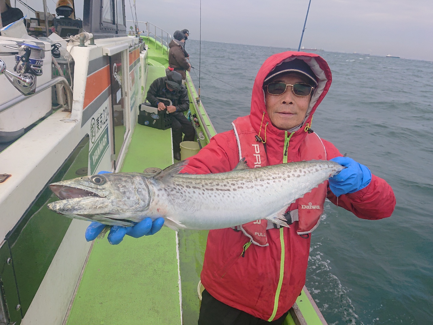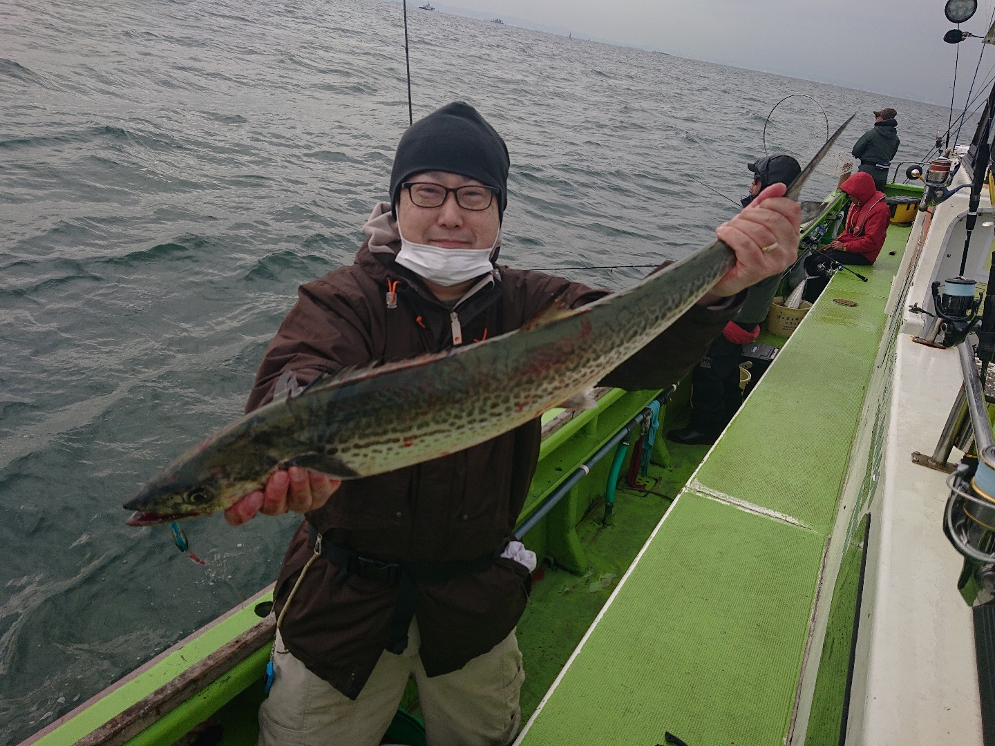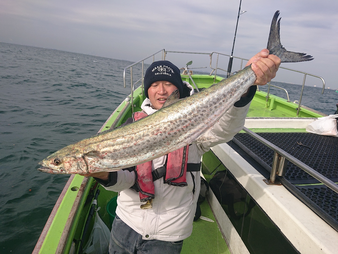 【サワラ船】 サワラ 大きさ 75~94㎝ 数 0~2匹(2隻で11匹) イナダ 大きさ 45~55㎝ 数 0~10匹 竿頭 三鷹市 清水 憲夫さん 他1名 サワラ船は今日も2隻で出船しました。今日も東京湾の北側と南に分かれて捜索。北上した船は早々にサワラをGETできるも、その後はなかなか続かず・・。南下し沖目を捜索したほうは走り回り、ようやくイナダの群れに遭遇。最初はイナダのみでしたが、流し変えを続けているとサワラも浮上!その後は2隻とも合流しちょっとづつ貯めていきました。 最大は長さは90cm弱も、4.7kgもあり丸々と太ったサワラでした!