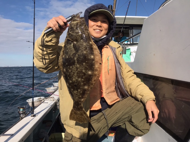 【マアジ船】 マアジ 大きさ 17~28㎝ 数 17~58匹 竿頭 葛飾区 染谷 元喜さん 今日も木更津沖から開始。初心者の方も多くレクチャーしながらスタート。皆さんコツをつかんでくると好調にHIT!朝のうちに吹いていた北風も急速にナギになり、コンディションは最高に!最近の泳がせブームで、30匹ほど釣り上げたら半数の方は泳がせ仕掛けにチェンジ。じっくり狙いポツポツと順調にアタリが!1.3~2kgほどの肉厚のヒラメが計5枚浮上!他に青物らしき強烈な引きもあり、楽しめました!!