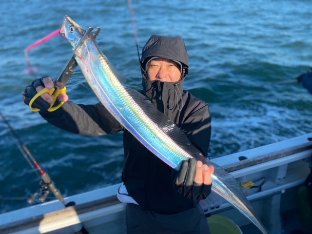 【タチウオ船】 タチウオ 大きさ 75~110㎝ 数 0~11匹 竿頭 杉並区 網中 勝さん 他1名 タチウオ船は木更津沖から開始。反応はしっかりと出ているものの、活性はそれほど高くはなく、じっくりと流し込んでポツリと型を出す程度・・。ただ、反応は広範囲にバッチリと出ているので、時間帯によってはバタバタっと活性が高まるのではないかと期待しましたが、結局帰り際まで盛り上がることなく終了となってしまいました・・。