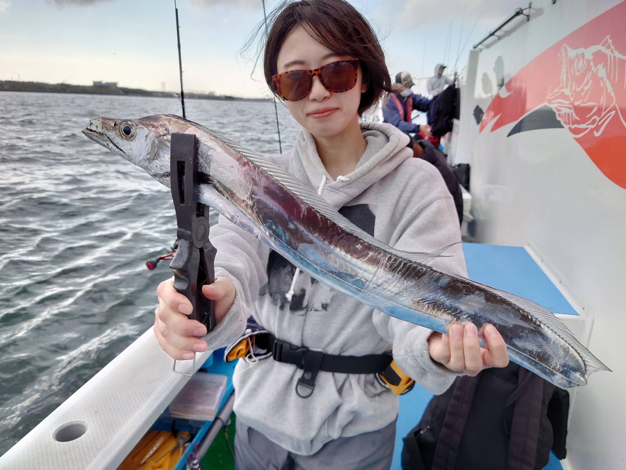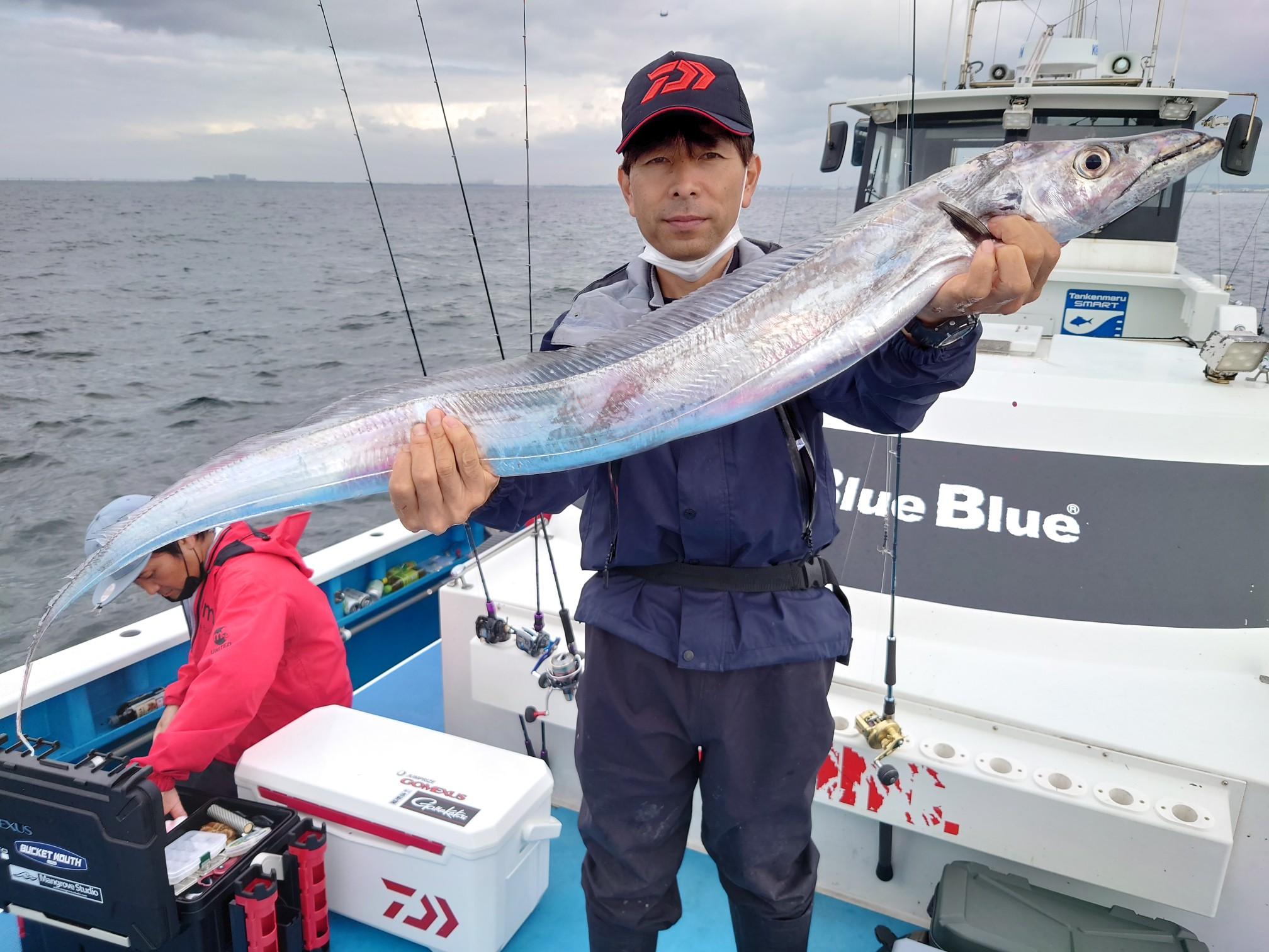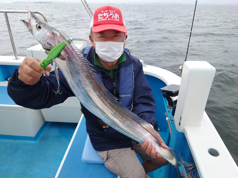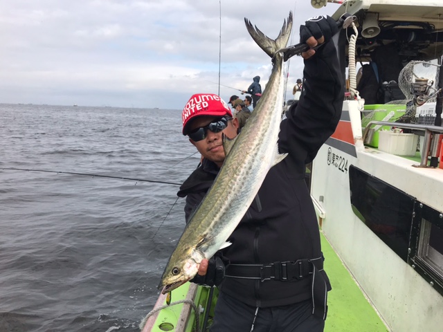【タチウオ船】 タチウオ 大きさ 75~119㎝ 数 6~22匹 竿頭 松戸市 高木 祥行さん 昨日好調だったポイントに直行!今日もベイト反応はしっかりと出ており、流し変えの度に順調にHIT!水深も浅いので軽く前にキャストし、斜め引きをするとアタリが多いようでした!昼頃に移動したポイントでも好調にポツポツとHIT!サイズのいいのを追加できました! 浅場用に80gほどのジグと、展開次第では深場用に120~150gのジグもお持ちください!
