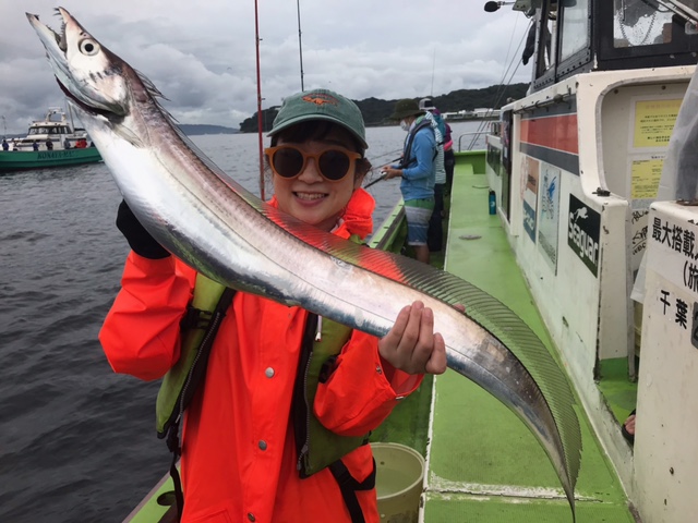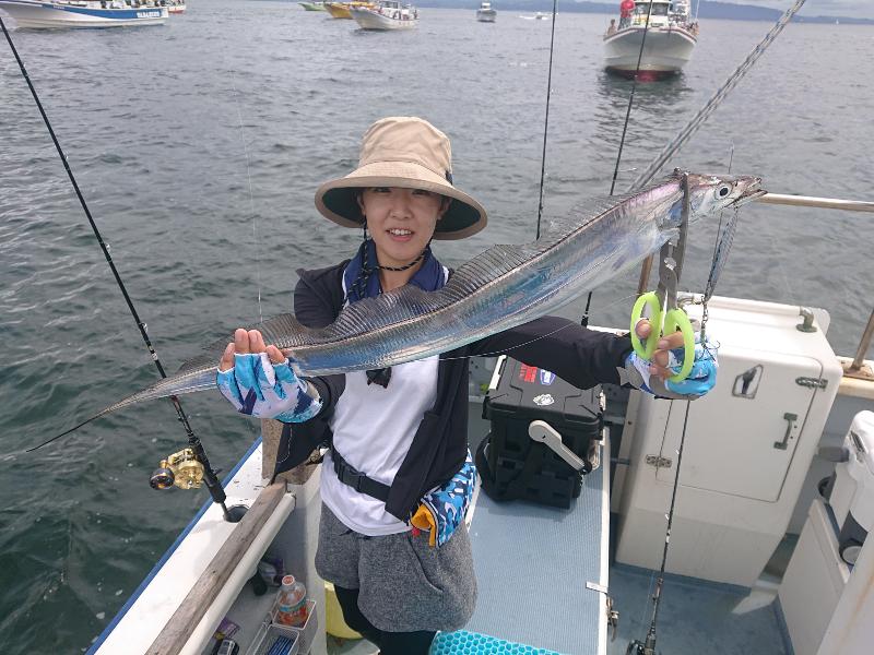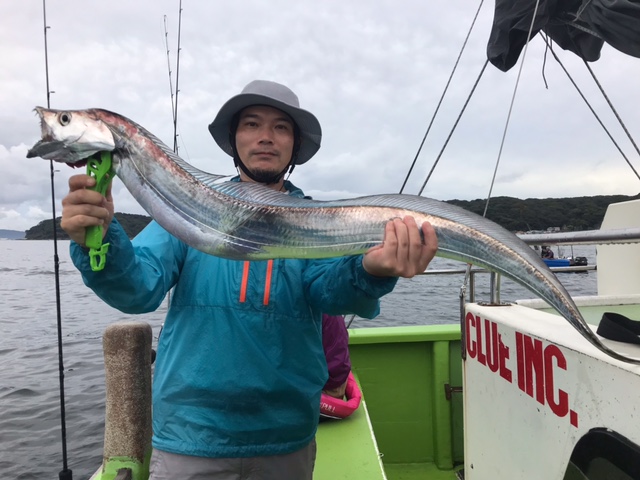 【タチウオ船】 タチウオ 大きさ 60~127㎝ 数 0~15匹 竿頭 江戸川区 武村 康晴さん 今日は3隻で出船しました。ともに10mほどの浅場のポイントからスタート。朝のうちは反応も盛り上がっており、流し変えのたびにポツポツと好調にHITするも、次第に反応も消滅気味に・・。昼前に走水沖に移動。こちらは40~60mくらいに反応があるものの、アタリっぷりはイマイチ・・。ただ後半になり、上げ潮が流れてくるとメーター前後の良型も増え、ポツポツと順調にHITしてくれました!