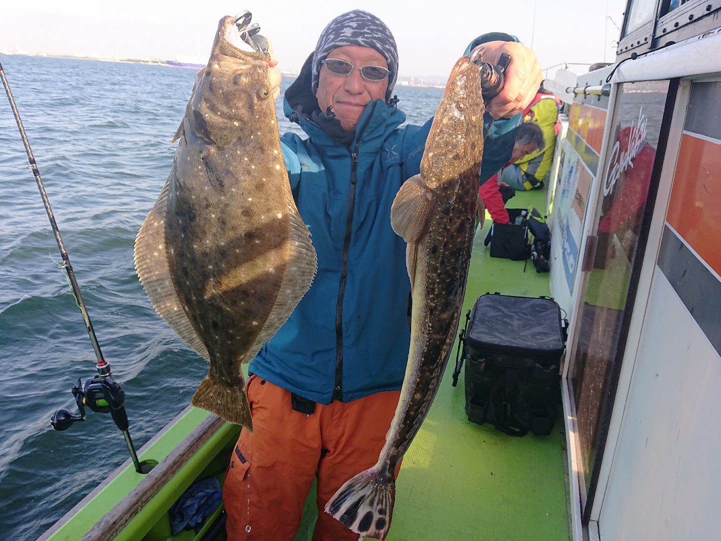 いい凪なので一気に南下し大貫沖からスタート。水深3m~25mほどまで広範囲に探り、本命は2匹のみとイマイチでしたが、今日は外道が多彩!タイやヒラメのって感じで、色々と掛かってきて楽しめました!上げ潮に変わると海堡の北側に移動。流し変えの度にポツポツとアタリは出せ、順調に船内に!アタリも連発する場面もあったりバラしも目立ったりしながら後半は盛り上がりました!