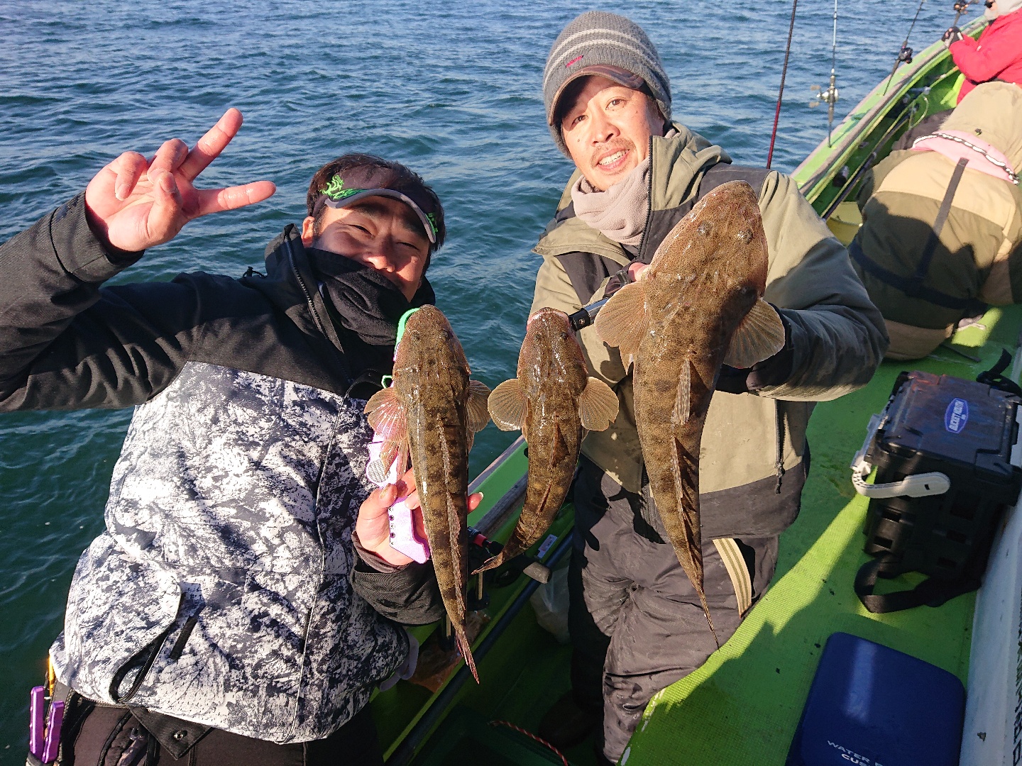 【マゴチ船】 マゴチ 大きさ 40~52㎝ 数 0~3匹(船中20匹) 他、ヒラメ・ホウボウ・スズキ 竿頭 所沢市 桜井 忠博さん 他2名 今日も凪なので一気に南下し沖目のポイントから。先日までのアタリの多さは無いものの、流しかえの度にポツポツと。ただ、今日はちょっとバラシも多め・・。潮先の方がいい感じにバラしちゃうもんだからその後のアタリが続かず・・。船の四隅に座る方はバラシは厳禁!今日は夏場に狙うようなポイントも捜索。こちらでもポツポツとアタリが出せました!