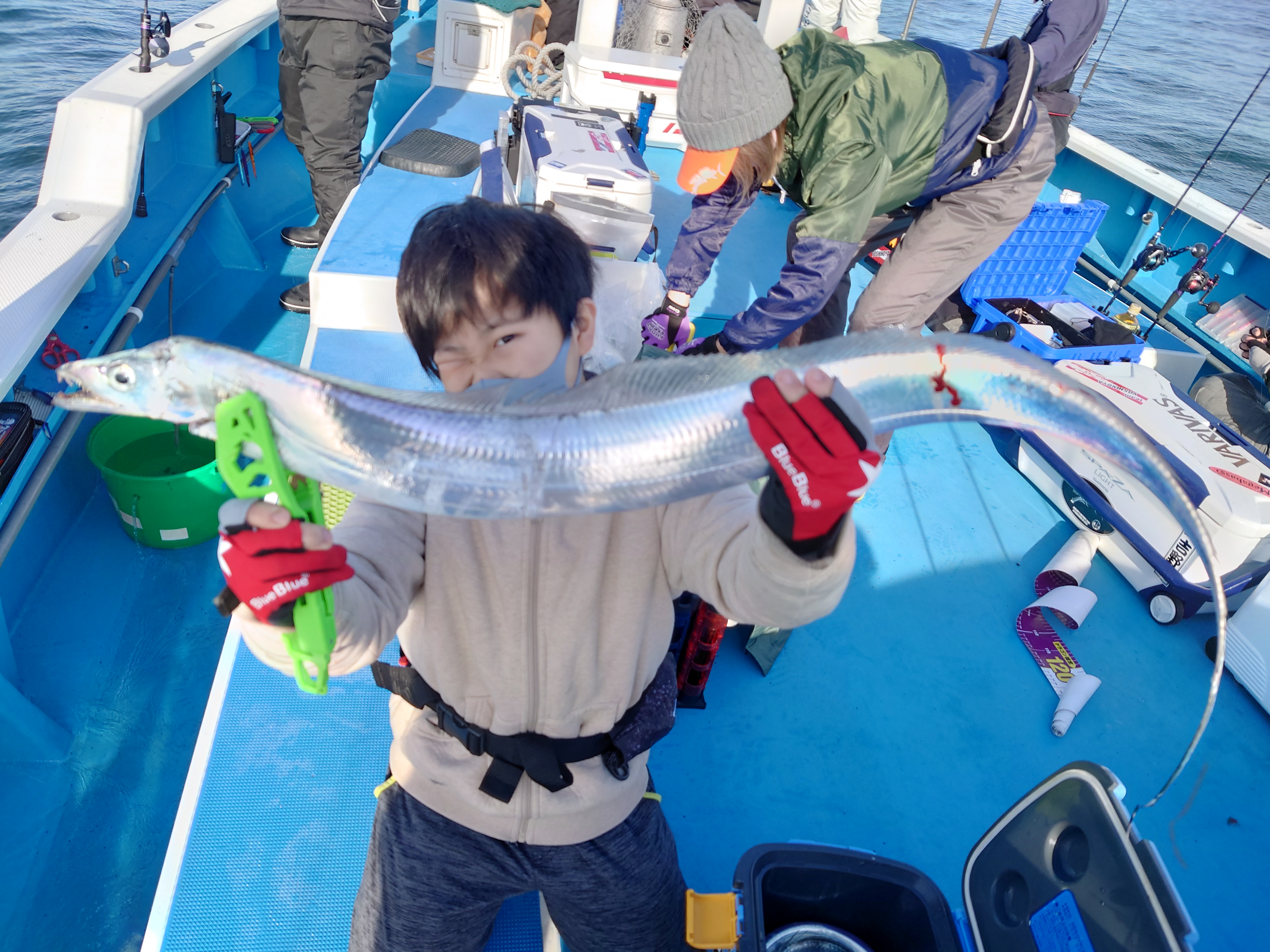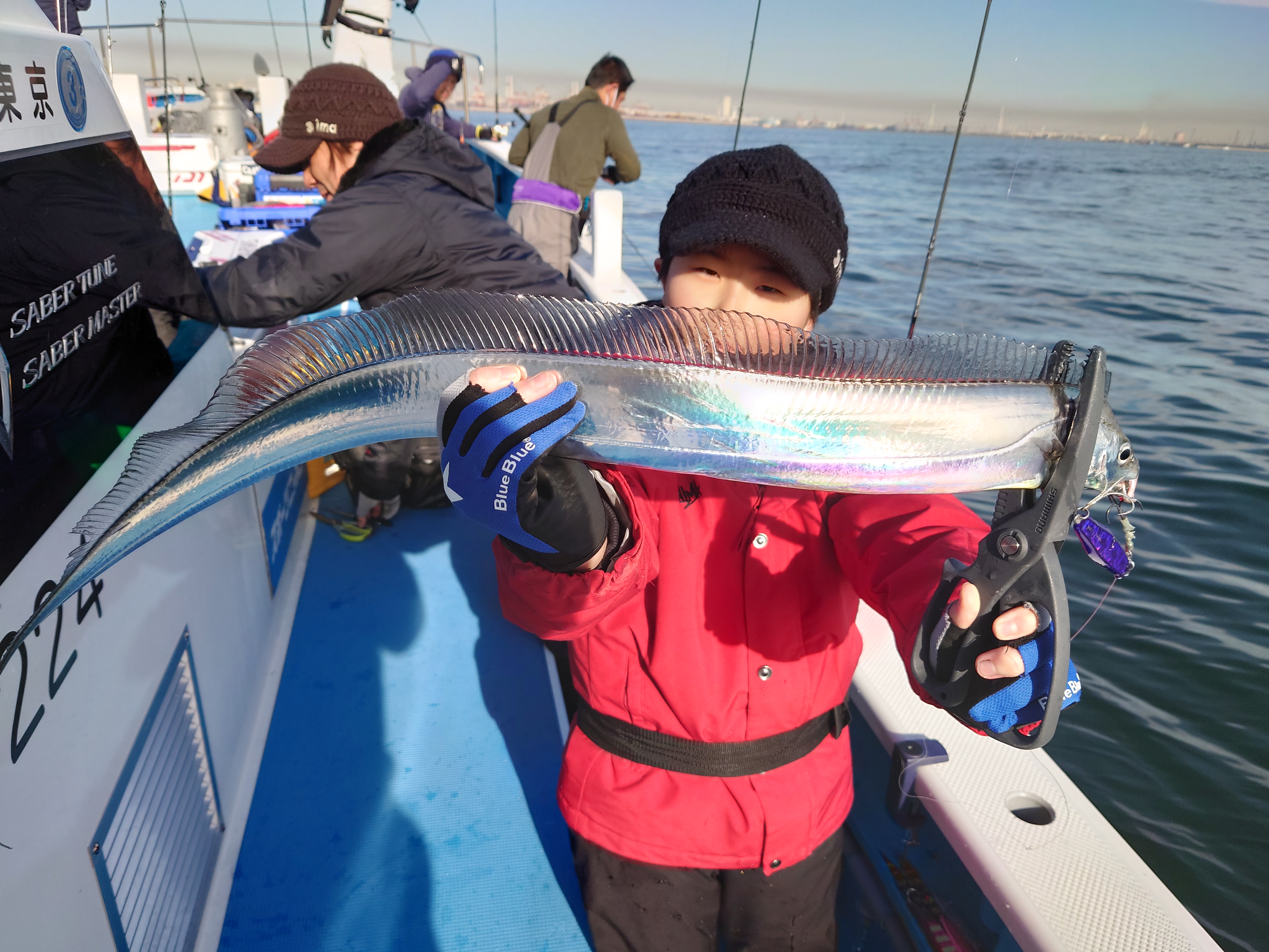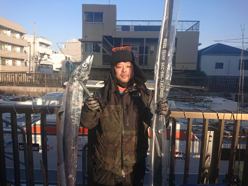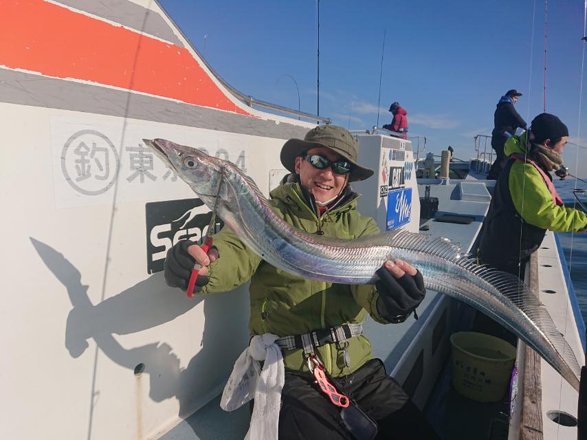 【ジギングタチウオ船】 タチウオ 大きさ 80~124㎝ 数 0~23匹 竿頭 あきる野市 伊藤 賢二さん タチウオ船は2隻で出船。朝一は猿島沖からスタートするも、反応はあるのですがなかなかアタリが出せず・・。1隻は40mラインからスタートし、ポツポツとHITしているとの事で合流。反応は海底付近から10mほど立ち上がっており、雰囲気は良かったですがアタリっぷりはかなりテクニカルな感じ。手慣れた方はポツポツと極太サイズ主体に好調に釣り上げていらっしゃるも、慣れない方はアタリが出せない感じ・・。ちょっと釣果に差が出てしまいましたが、40mラインで復調の兆しが!今後に期待です!!