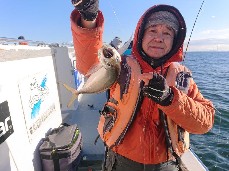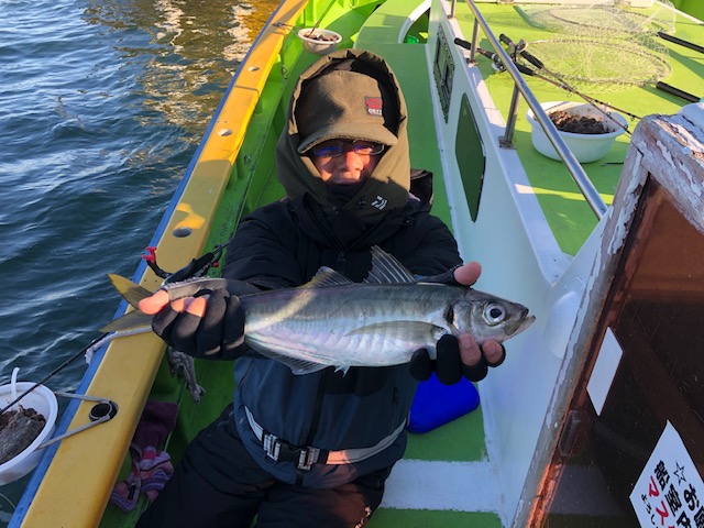 【マアジ船】 マアジ 大きさ 15~46㎝ 数 10~72匹 竿頭 三郷市 田澤 剣さん アジ船も2隻で出船。木更津沖と扇島沖に分かれスタート。木更津の方は沖目の根回りのポイントで良型主体にポツポツとHITするも、今日はちょっとアタリが遠め。コマセが効いてもなかなか活性高まらず・・。後半は小ぶりのアジまじりで20cm級が活発にあたってくれました!一方、扇島沖の船はストラクチャー周りを中心に狙い30cm超のサイズもポツポツとHIT!最大は46cmと特大サイズも浮上!【新春大物賞】もこちらの船がGETでした!