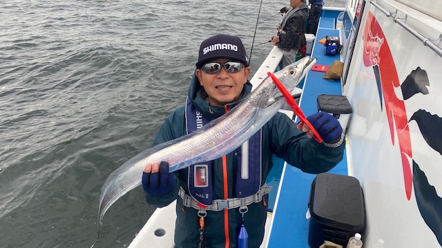 今日は出てすぐのポイントから捜索。ベイト反応を狙い、幸先良く良型のタチウオがポツポツ!ただ流しかえの度に反応は出ていましたが、型を見るか見ないかの感じ・・。深いおせずいつもの浅場に移動。こちらはショボめの反応が点在しており流しかえの度にポツポツと追加していきました。後半は40mラインでバタバタっとHITする時間帯も!長続きしませんでしたが、メーターUPも数匹浮上しました!