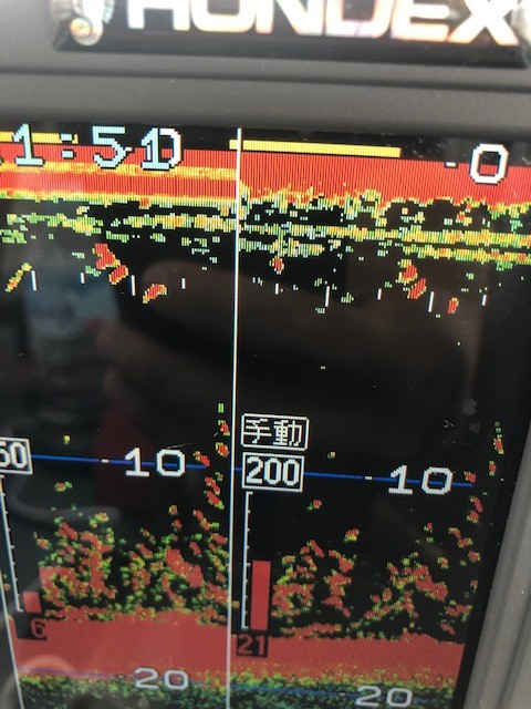 今日は昨日模様のあった40mラインから捜索。しかし今日は濁りがひどく、反応の判別が付かないため、横須賀沖に南下。こちらはショボめの反応ながら、広範囲に散らばっている感じで、流しかえの度にポツリとHIT。ただ群れが固まっていないため小移動の繰り返しでちょっと苦戦気味。深場のポイントも良くない様でしたので、じっくりと狙いました。