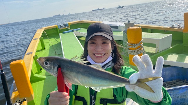 アジ船は2隻で出船しました。ともに扇島沖の15mほどのポイントから開始。海底にへばりつくショボめの反応でしたが、コマセが効いてくると活発な食いっぷりに!20~30㎝級のコロコロ太ったアジ主体に2時間ほどいい食いっぷり!その後は徐徐々にアタリも落ち着いてきましたが、じっくりと狙っているとまたポツポツと!時折30cmオーバーも浮上し帰り際まで順調に続きました!今日の竿頭はアジ釣り初挑戦の方でした!