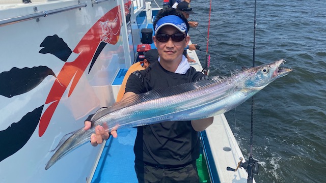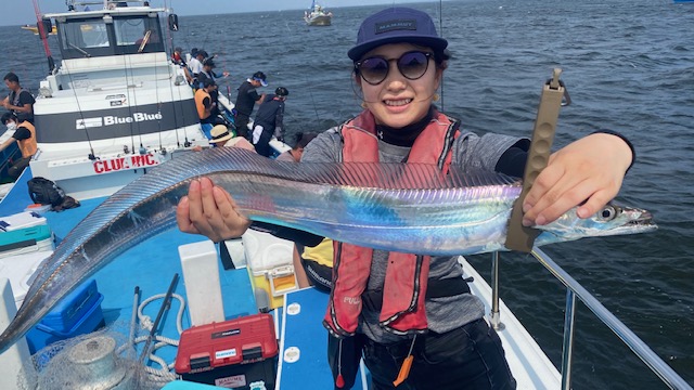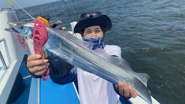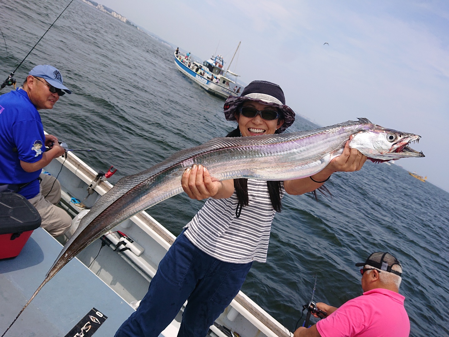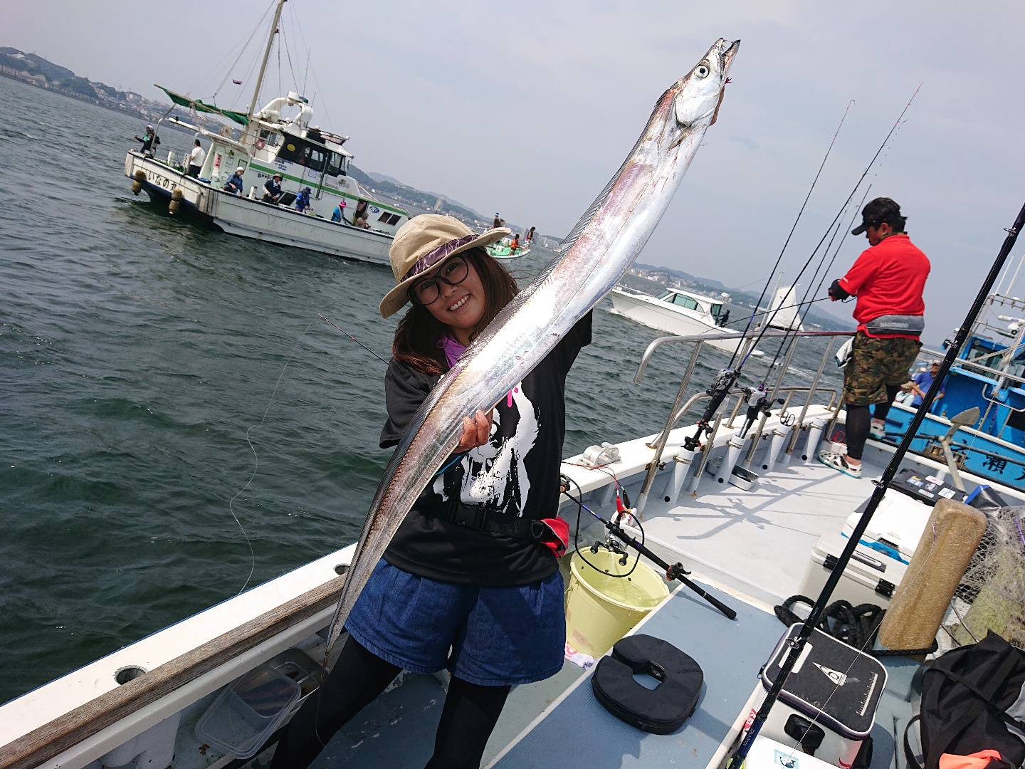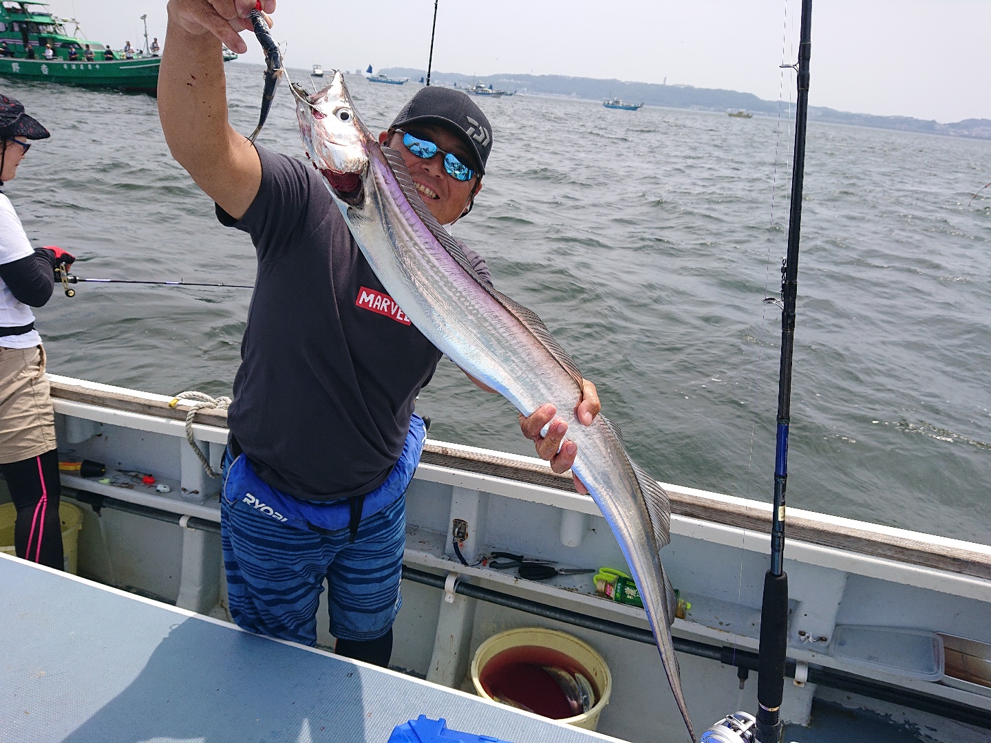本日スタートのテンヤタチウオ船。タチウオ釣り名人のしのぶ姉さんこと、三石忍さんもご乗船になり、テンヤ釣りのレクチャーをしていただき釣り場に向かいました!走水沖からスタートし海底付近に反応も点在。早々にしのぶ姉さんが131cmのドラゴンをGET!ショボめの反応ながら点在しており、流しかえの度にメーターUP主体にポツポツと!