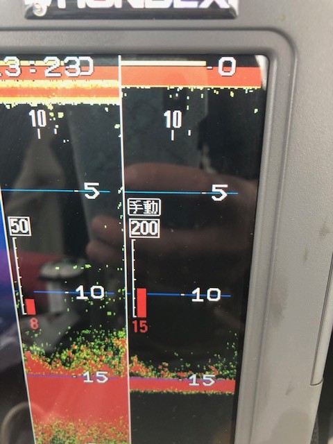 今日はストラクチャーのポイントから狙うも、タナも浮き気味で2~5mの間を浮いたり下がったり一定な感じではなく、アタリも遠め・・。各ポイントを転々と回るも、どこも型を出すのですが続く感じではなく・・。南西の風も強めに吹いてきて、船酔いの初心者の方が0匹のままでした・・。