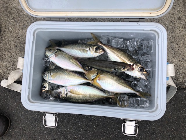 ゆっくりと航行し、風影の川崎沖からスタート。反応はすぐに見つかり、コマセが効いてくると好調な食いっぷりに!初心者の方も慣れてくるといい感じにアジを釣り上げていらっしゃいました!