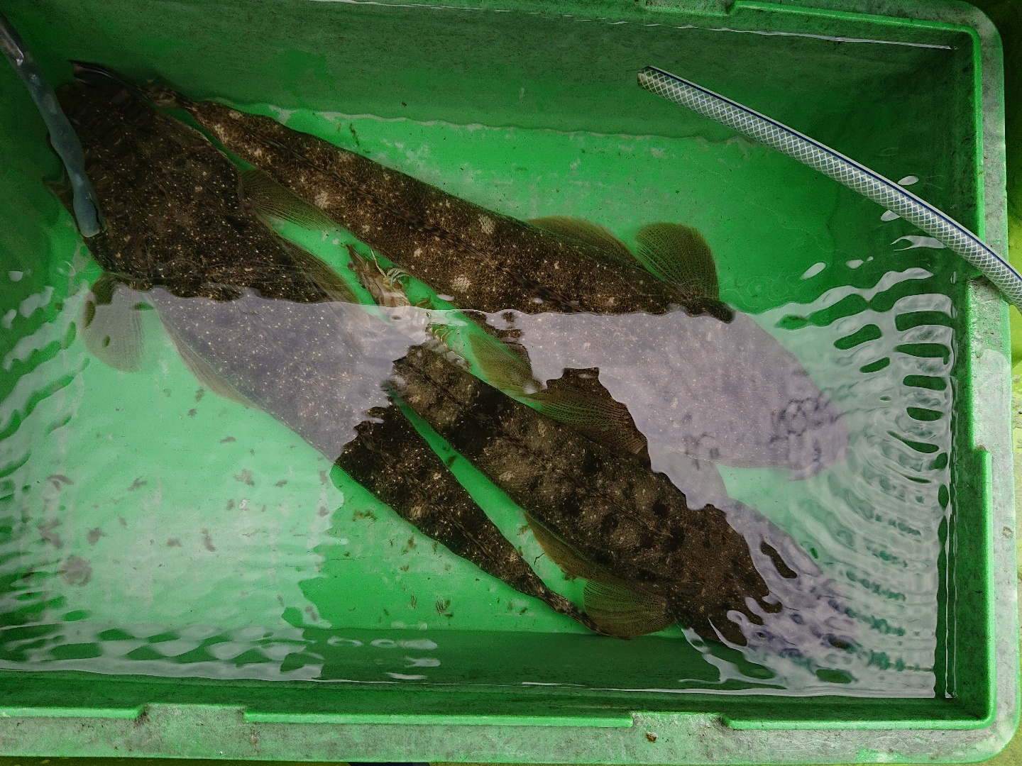 今日は南西の風が吹き込む前に、一気に南下し竹岡沖からスタート。しかし、到着早々風が届いてしまい・・。なんとか本命マゴチをGETできるも、エサ取りのサバフグの大群でサイマキはズタボロに・・。本命のアタリも遠く、深波になってきたので風影のポイントに。こちらでは流しかえのたびになんとかアタリは出せました。