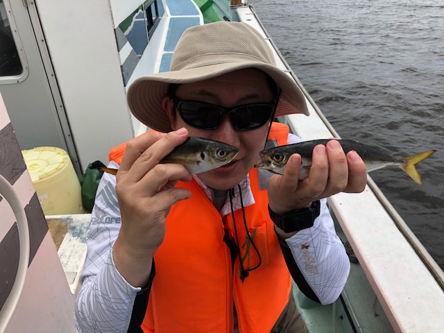 今日は徐々に南西の風が強まってくる予報でしたので、風影のポイントからスタート。反応は点在しているものの、全体的に浮いており、コマセを撒き続けても途中で抜けてしまう場面も多々。なかなか活性も高まらないので横浜沖に。僚船と合流し狙うも、こちらも浮き気味の反応でポツポツとHIT。活性もそれほど高くはなく、リールを巻いている途中でバレたり、水面でポロリしたりと数は伸びませんでした・・。