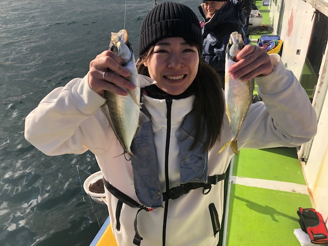 今日はストラクチャー周りからスタート。海底付近に反応が出ており、コマセが効いてくると好調にHIT!サイズも25cm級が多く良型そろい!時折、30cmを超えるアジも浮上し、最大は47cmと超大型も!1時間ほどでちょっとアタリも遠のいたのでポイントを移動。次の場所はちょっと小ぶりも交ってくるも活発な食いっぷりに!皆さん十分釣ったところで、後半はストラクチャー周りに戻り良型狙いに。朝ほどは活性は低いもポツポツと良型を追加し帰航しました!