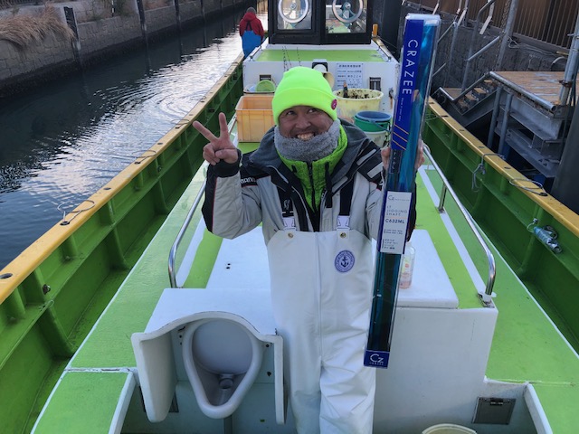 ともに水深20mの湾奥のポイントからスタート。反応は海底にへばりつくように出ており、地味にポツポツといった感じ。時折反応が3・4m海底から盛り上がるとアタリも連発したりしましたが、すぐに活性も落ち着き・・。その後もポツポツともうひと盛り上がり欲しいところでした。ただ、サイズは指4・5本級の太い奴ぞろい!残念ながらお一人0匹の方が出てしまいましたが、良型そろいでお土産にはなりました!